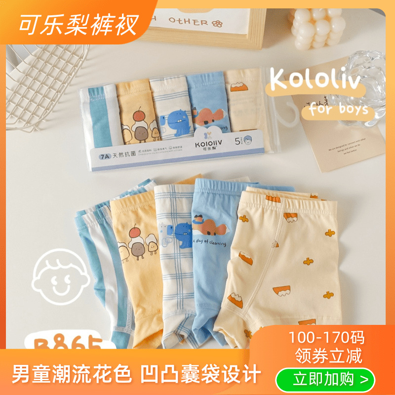 品名:可乐梨四角裤五条装 儿童内裤棉质A类