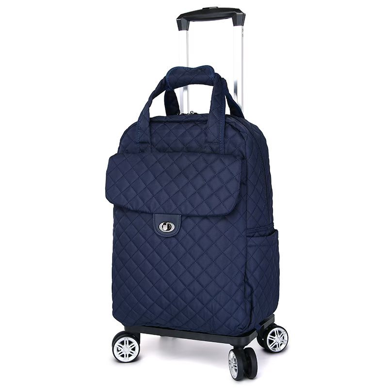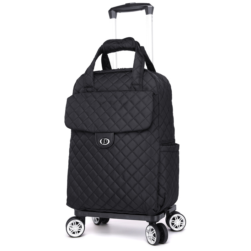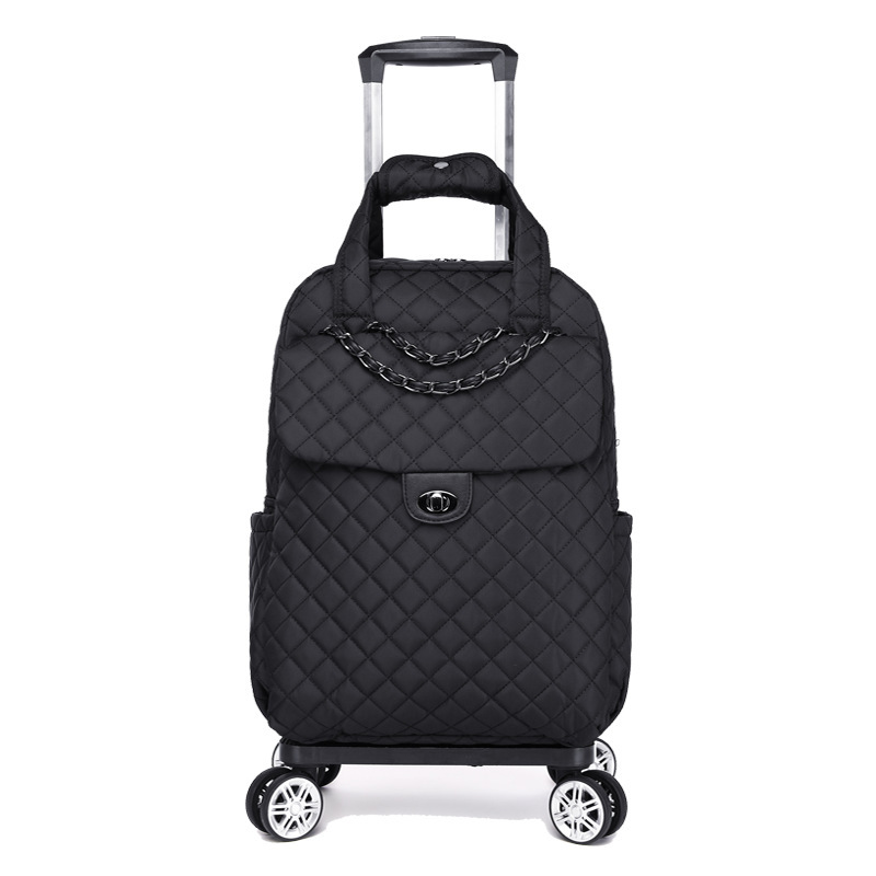 Lingge 작은 향기로운 스타일 트롤리 가방 유행 유행 휴대용 경량 여성용 간단한 보트 가방 가방 유니버설 휠 트롤리 가방스토어 가기
