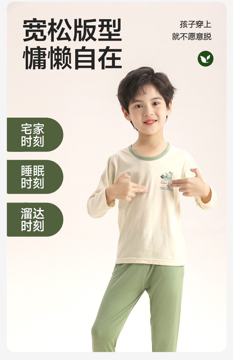 어린이 모카 면화 속옷 세트 소년 가을 겨울 얇은 가을 옷 세트 중 · 대형 어린이 봄 · 여름 가정 옷 파자마 A스토어 가기