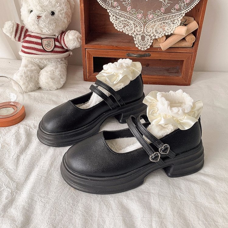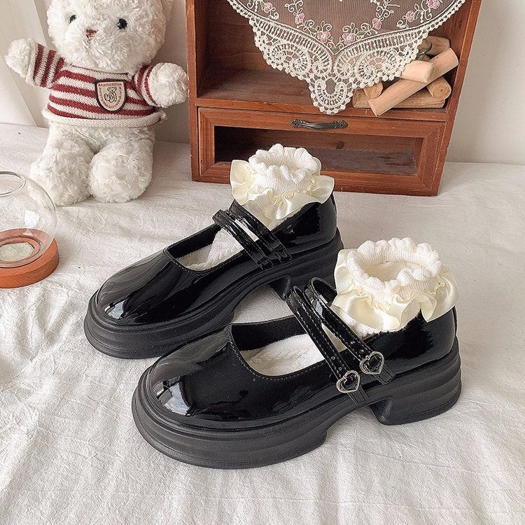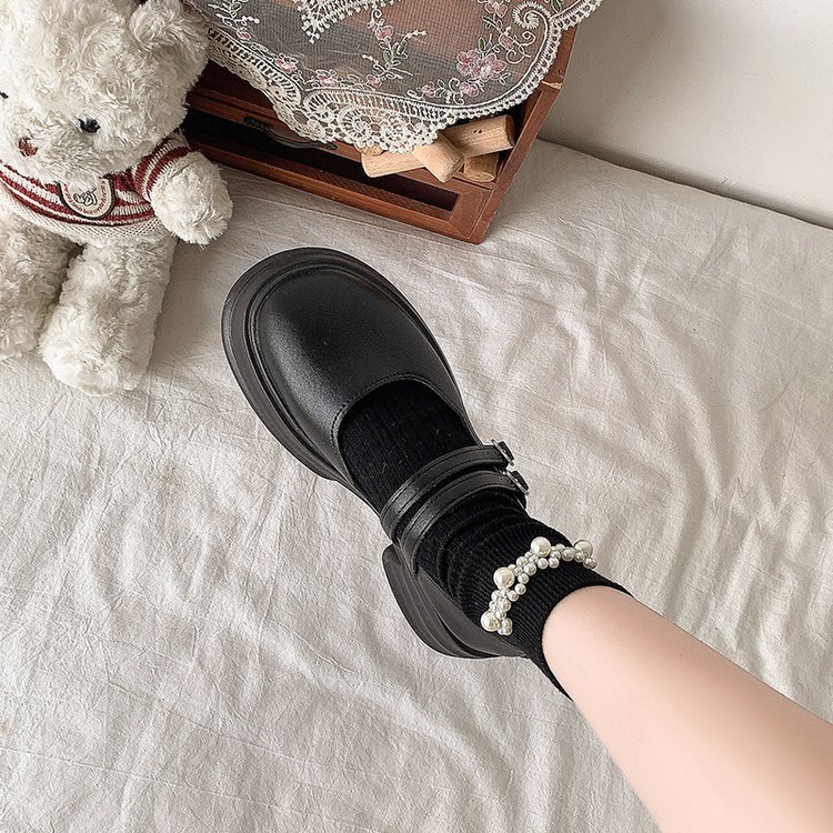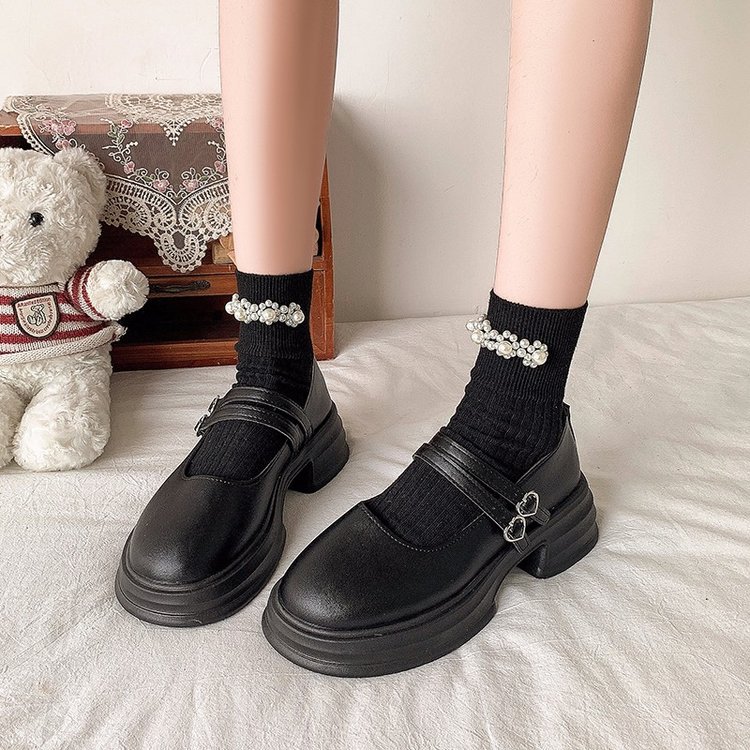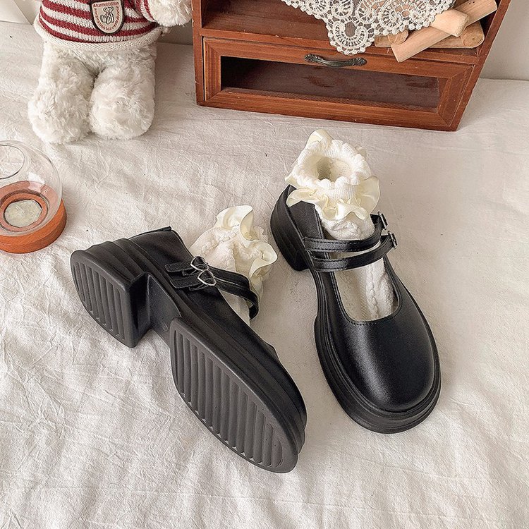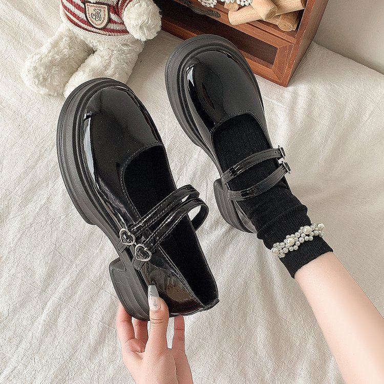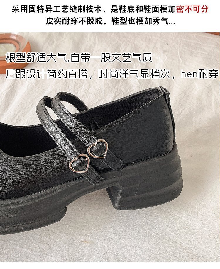 둥근 발가락 메리 제인 신발 2024 새로운 가을 여성 신발 두꺼운 유일한 두꺼운 힐링 로퍼 레트로 가죽 신발 버클 JK스토어 가기