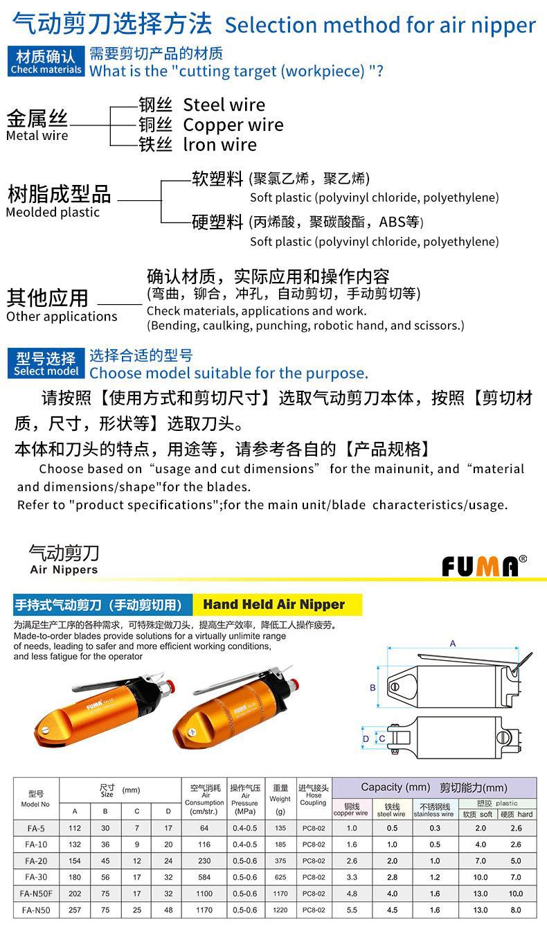 대만 FUMA 공압 가위 공기 전단 산업 등급 플라스틱 노즐 가위 구리 철 요소 발 공압 가위 절단기 헤드스토어 가기