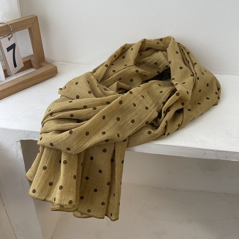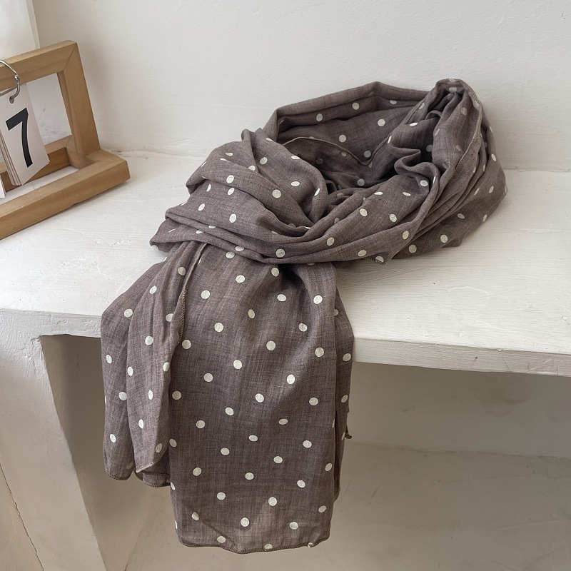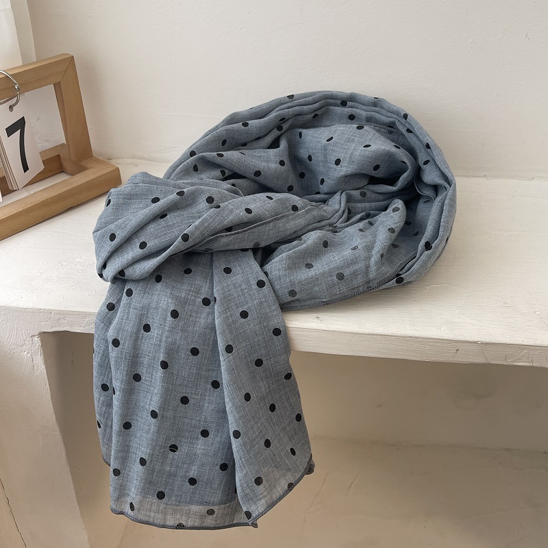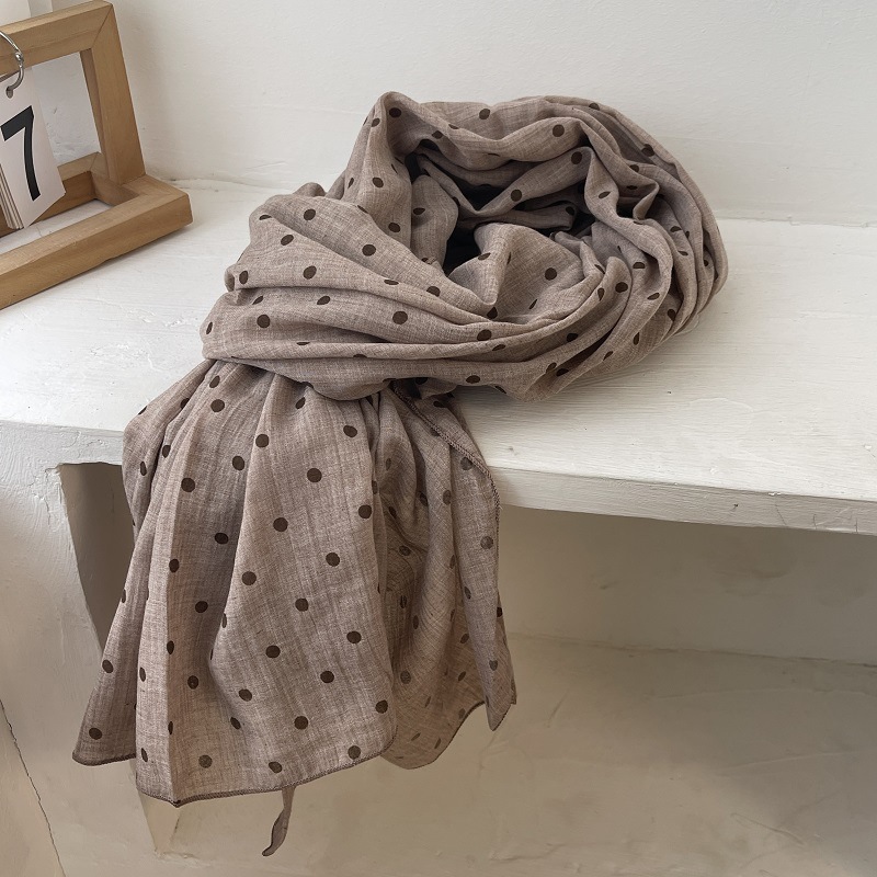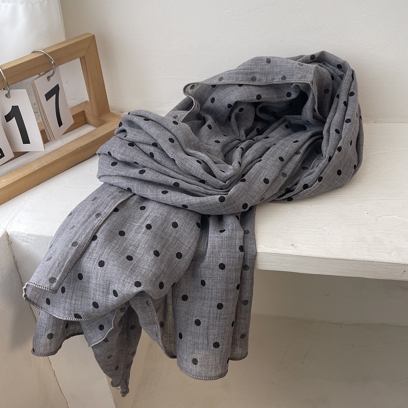 2024 가을과 겨울 면화 및 리넨 스카프 레트로 웨이브 도트 롱 숄 올 매치 얇은 따뜻한 고급 목 보호 스카프