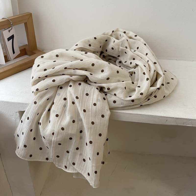 2024 가을과 겨울 면화 및 리넨 스카프 레트로 웨이브 도트 롱 숄 올 매치 얇은 따뜻한 고급 목 보호 스카프스토어 가기