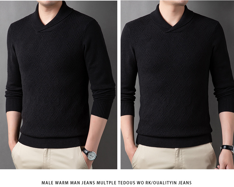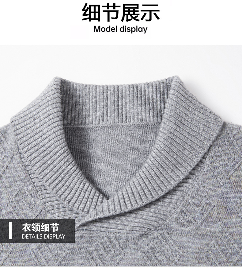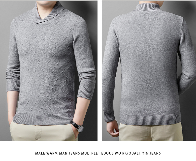 남자 한국식 패션 가을과 겨울 캐주얼 자카드 니트 스웨터 긴팔 스카프 칼라 고급 보텀 아빠 셔츠스토어 가기