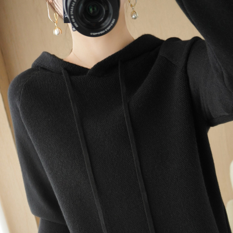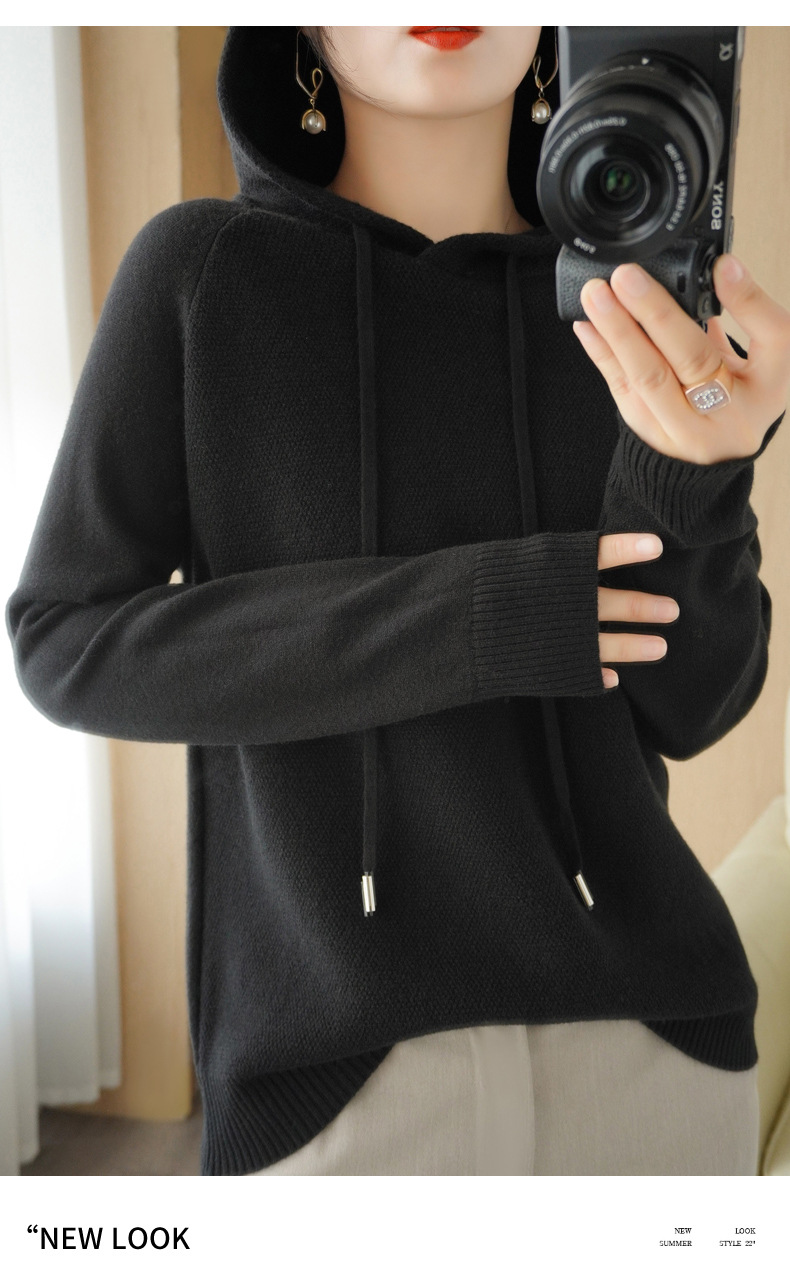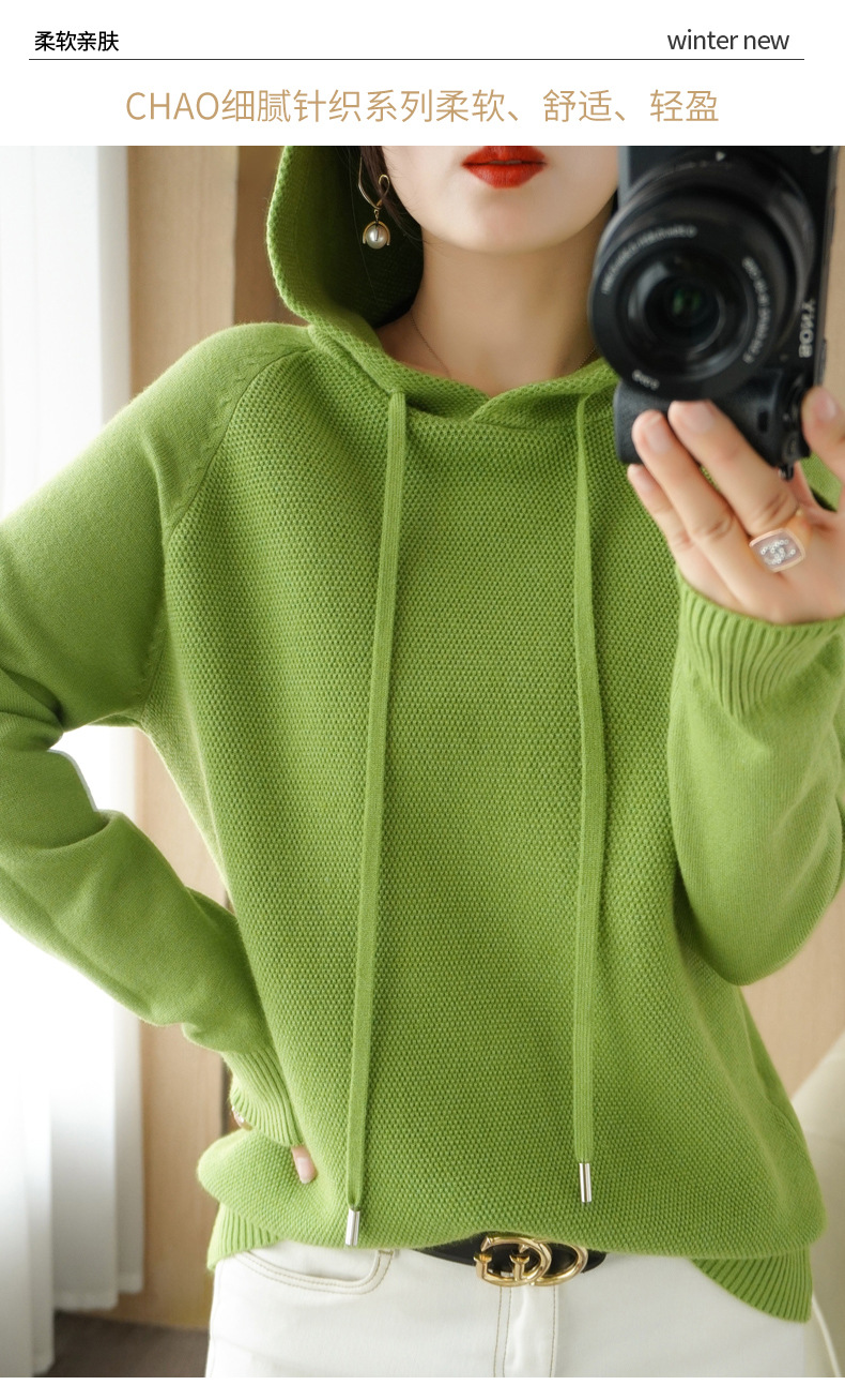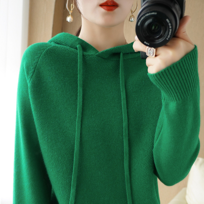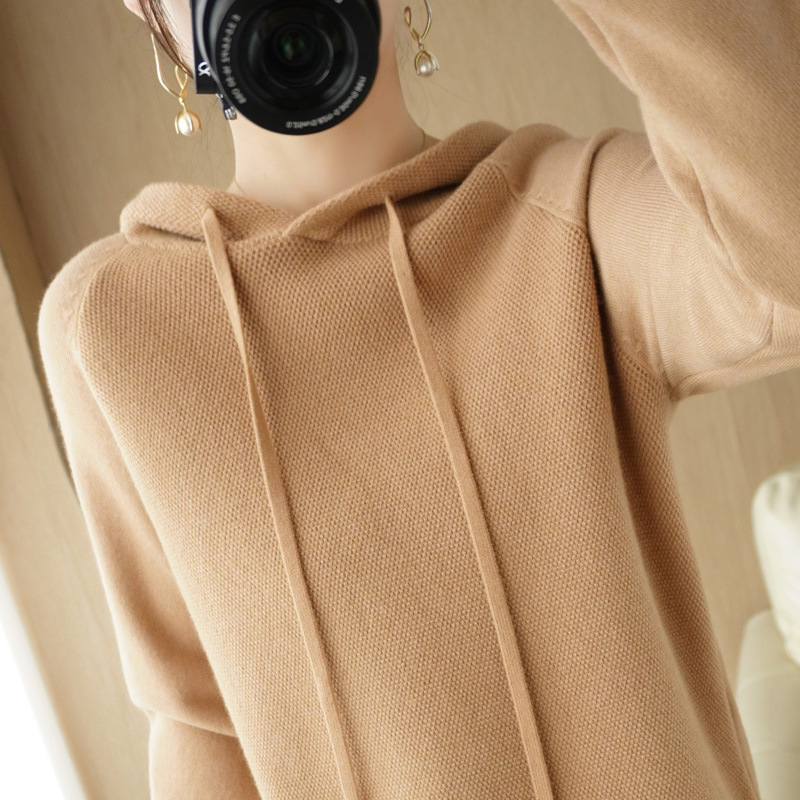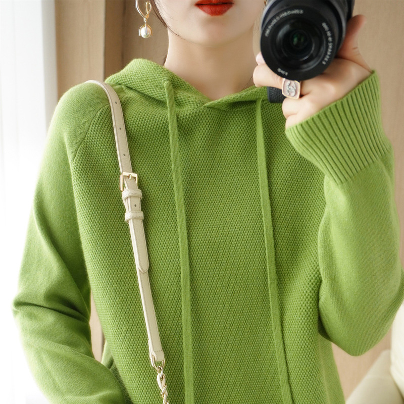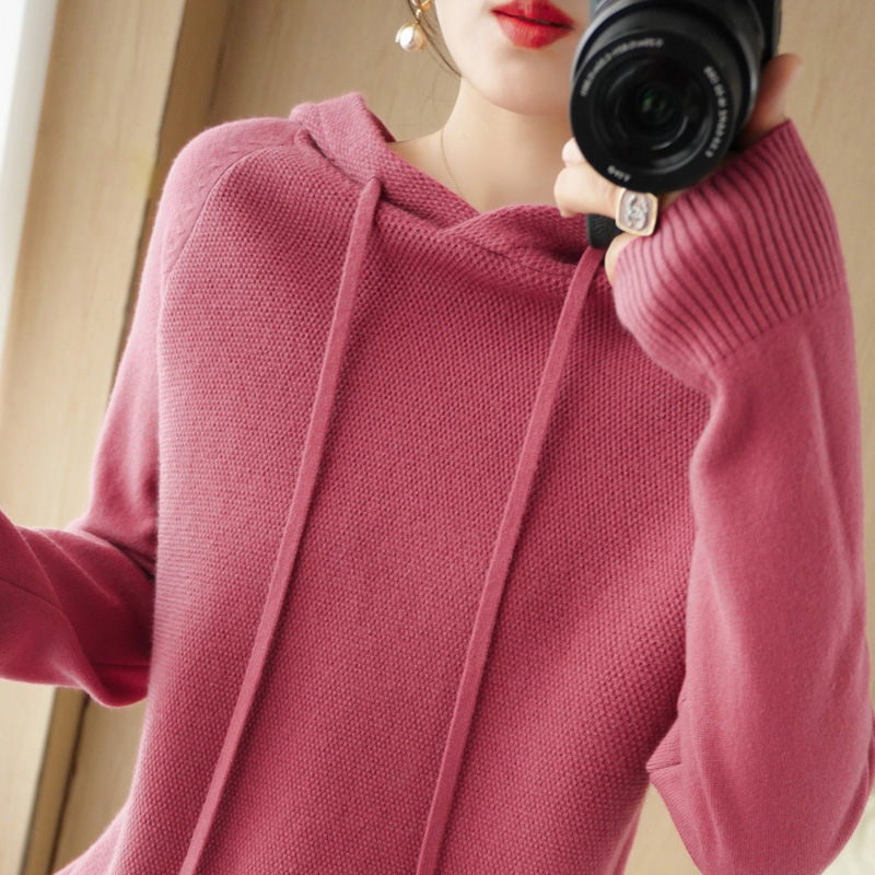2024 년 가을과 겨울 뉴 오스만투스 니들 여성용 후드 니트웨어 한국 스타일 게으른 스타일 베이스 셔츠 내복 겉옷 풀오버