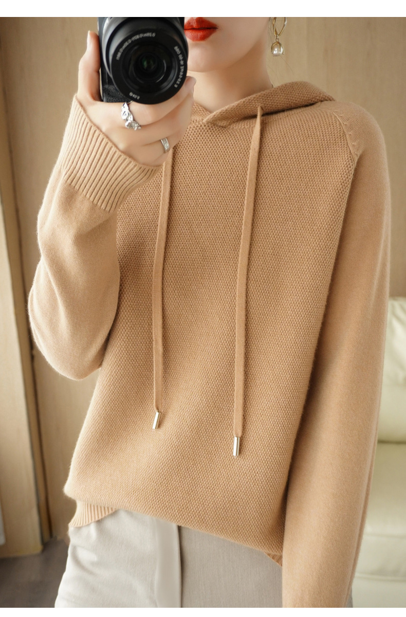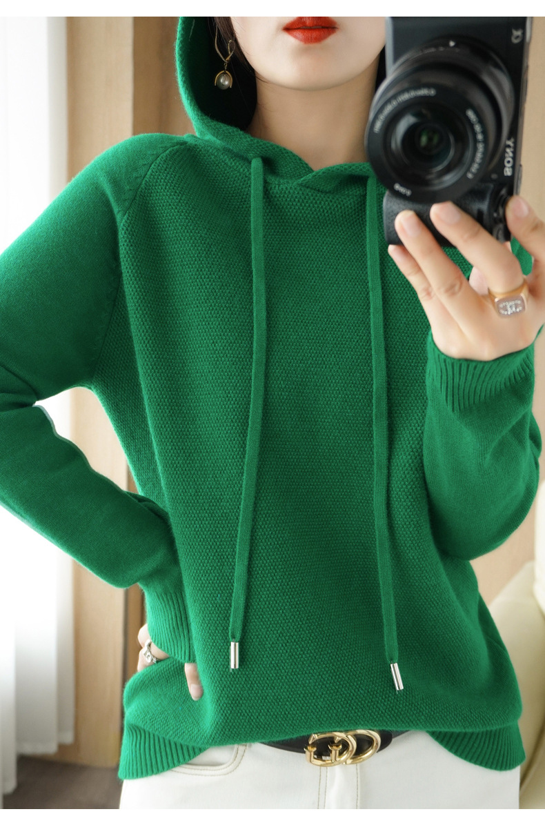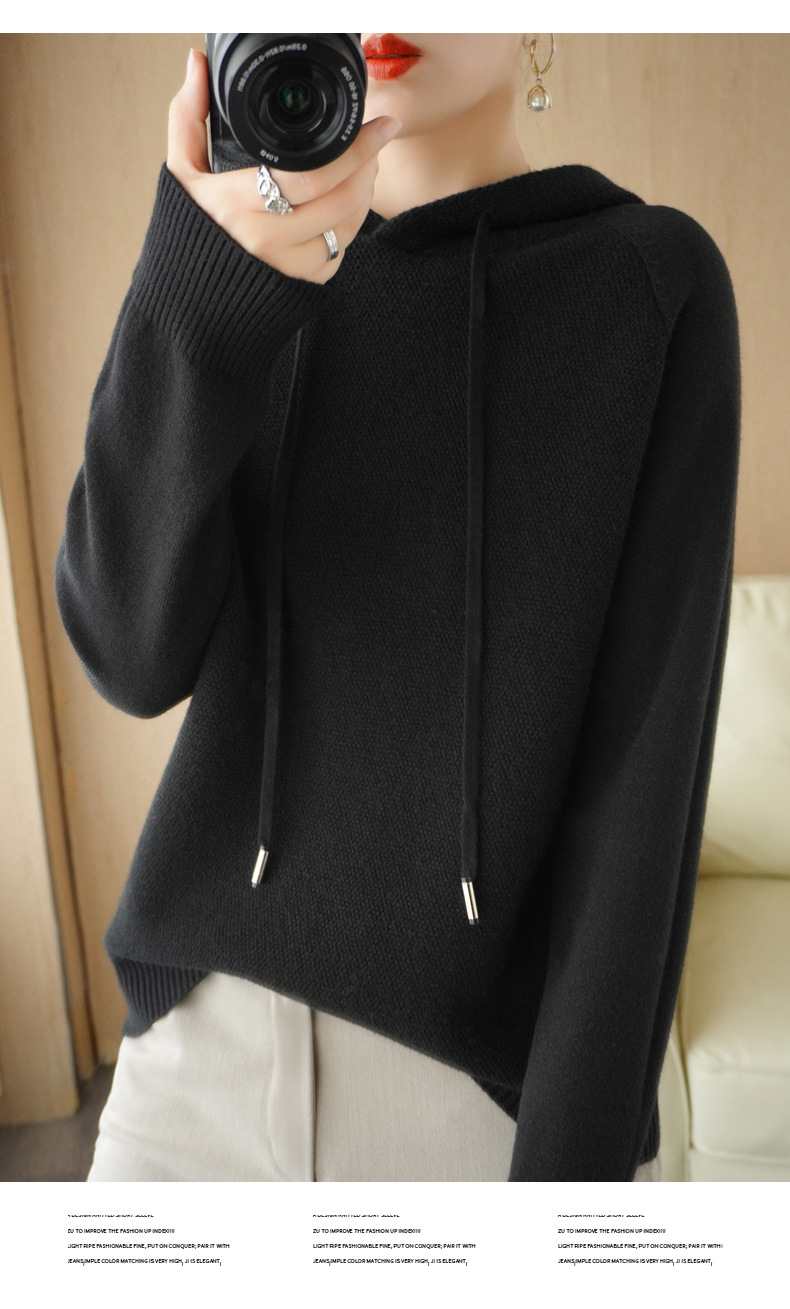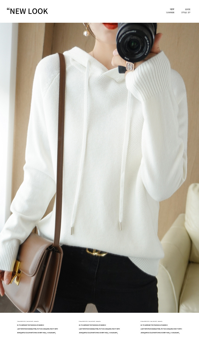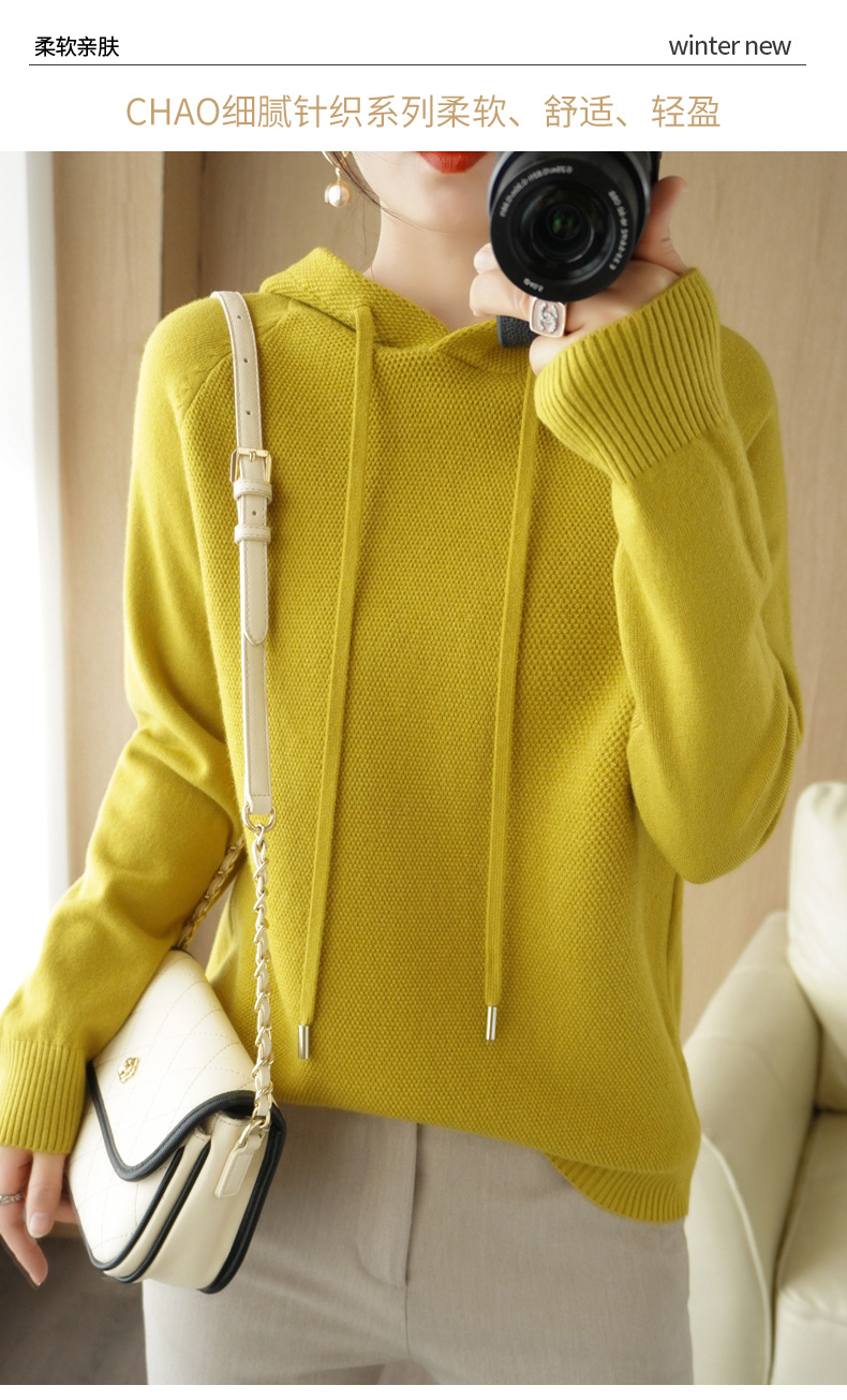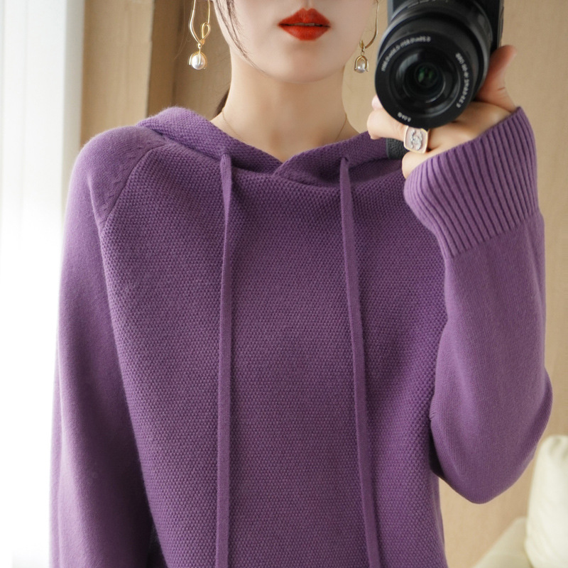 2024 년 가을과 겨울 뉴 오스만투스 니들 여성용 후드 니트웨어 한국 스타일 게으른 스타일 베이스 셔츠 내복 겉옷 풀오버