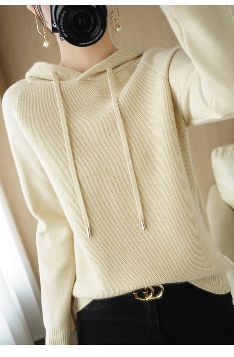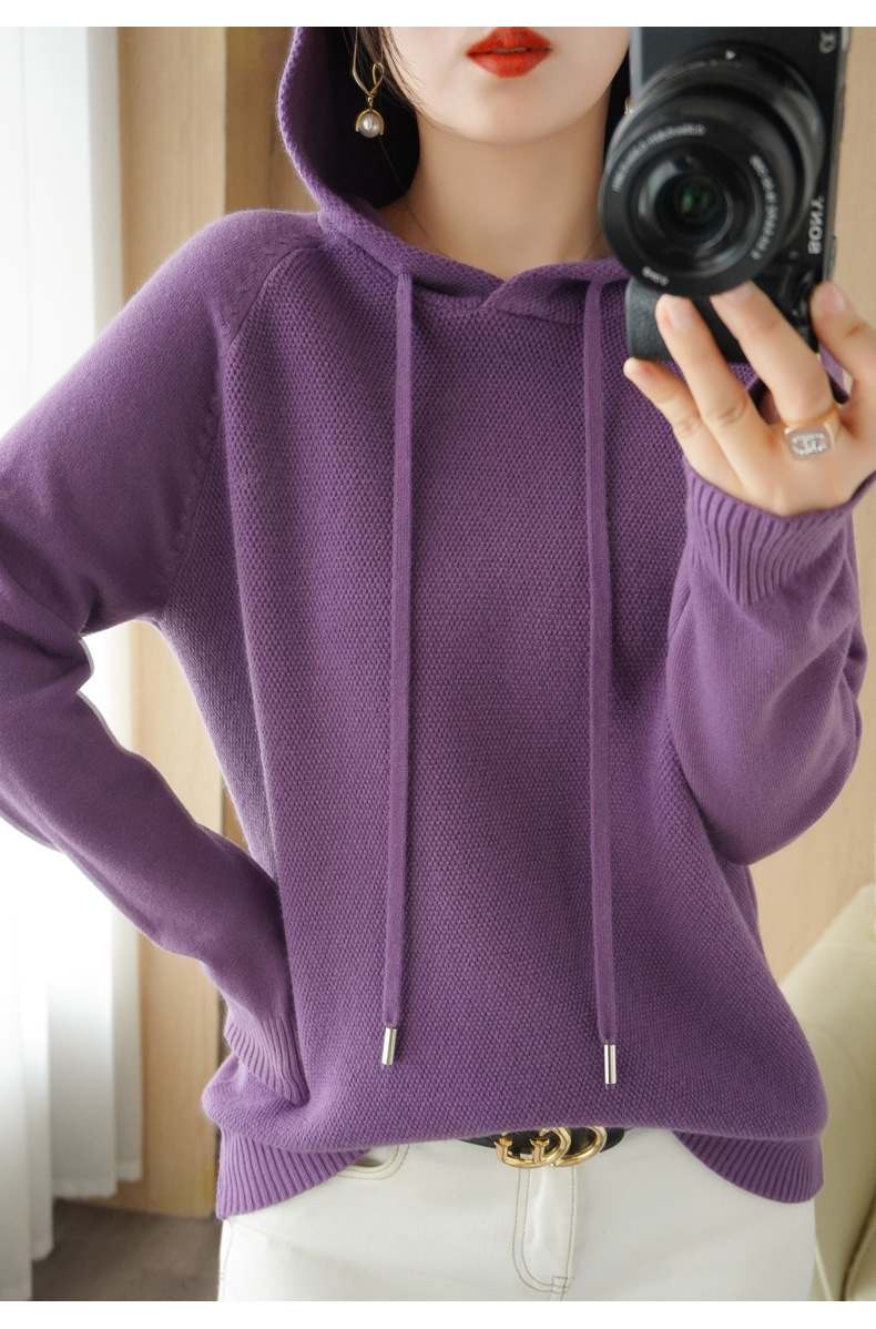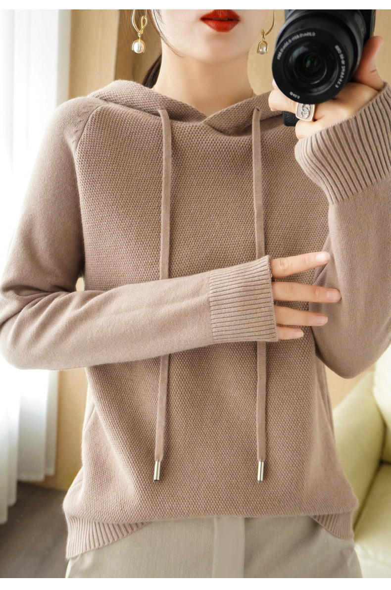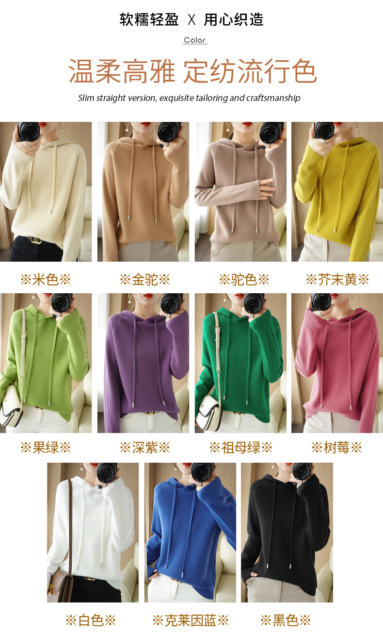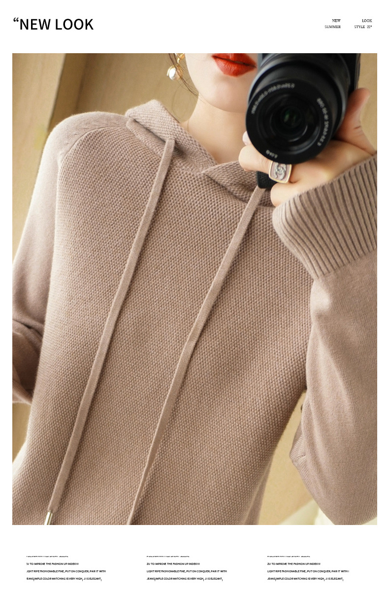2024 년 가을과 겨울 뉴 오스만투스 니들 여성용 후드 니트웨어 한국 스타일 게으른 스타일 베이스 셔츠 내복 겉옷 풀오버