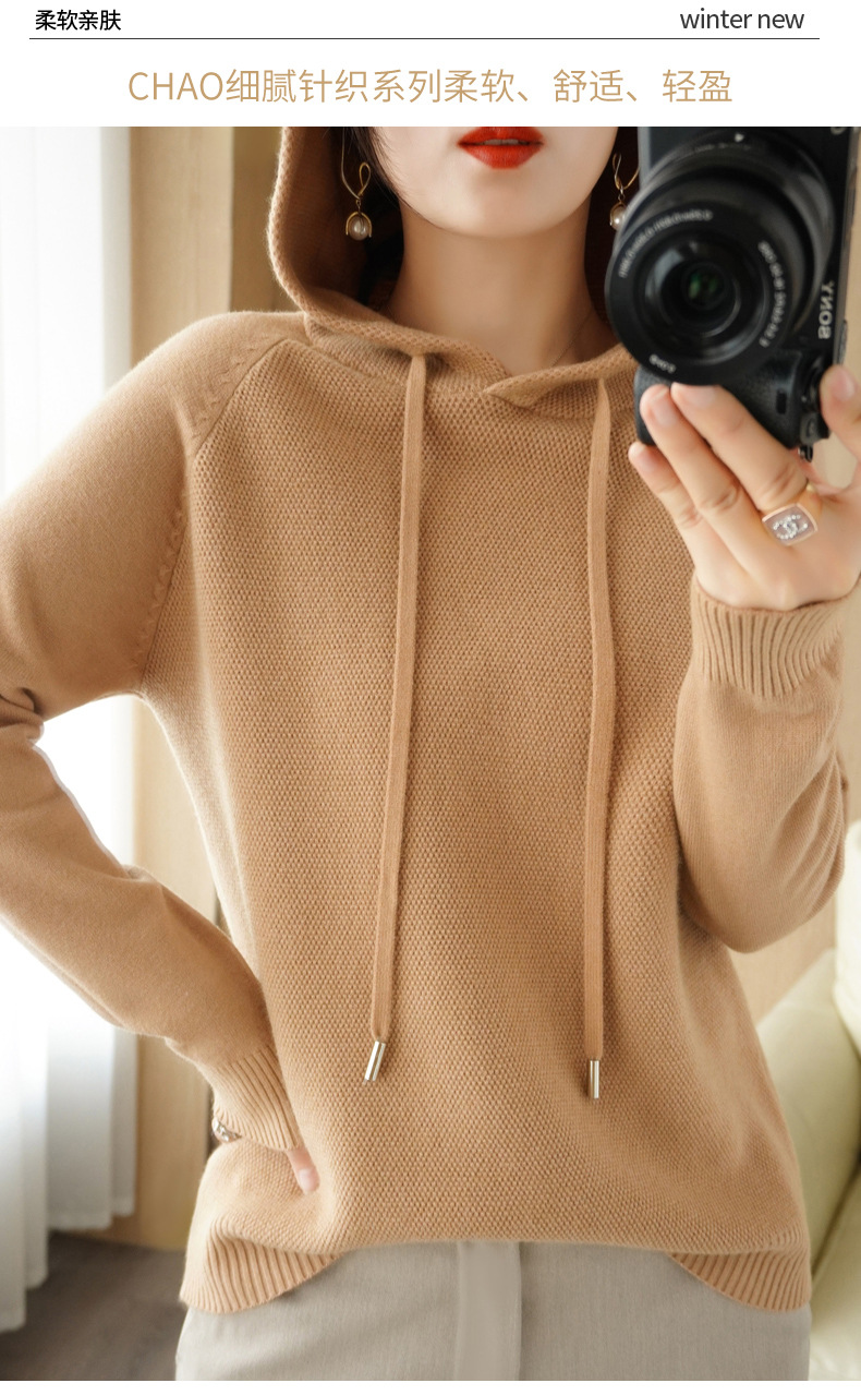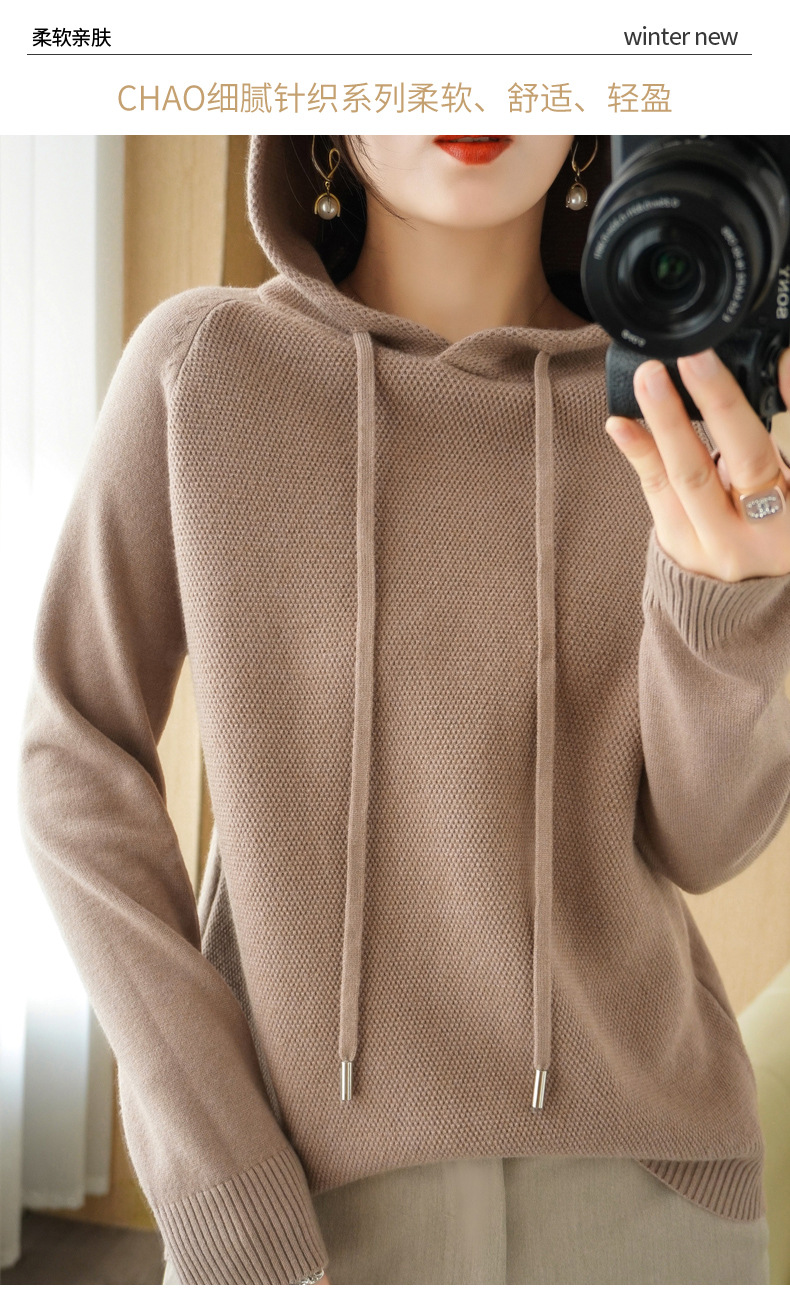 2024 년 가을과 겨울 뉴 오스만투스 니들 여성용 후드 니트웨어 한국 스타일 게으른 스타일 베이스 셔츠 내복 겉옷 풀오버스토어 가기