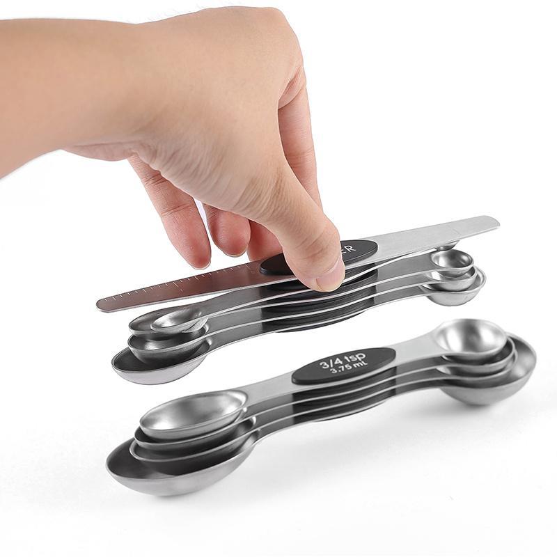크로스-테두리 스테인레스 스틸 측정 스푼 더블 헤드 자기 스테인레스 스틸 측정 스푼 세트 베이킹 도구 더블 헤드 측정 스푼 9 피스 세트