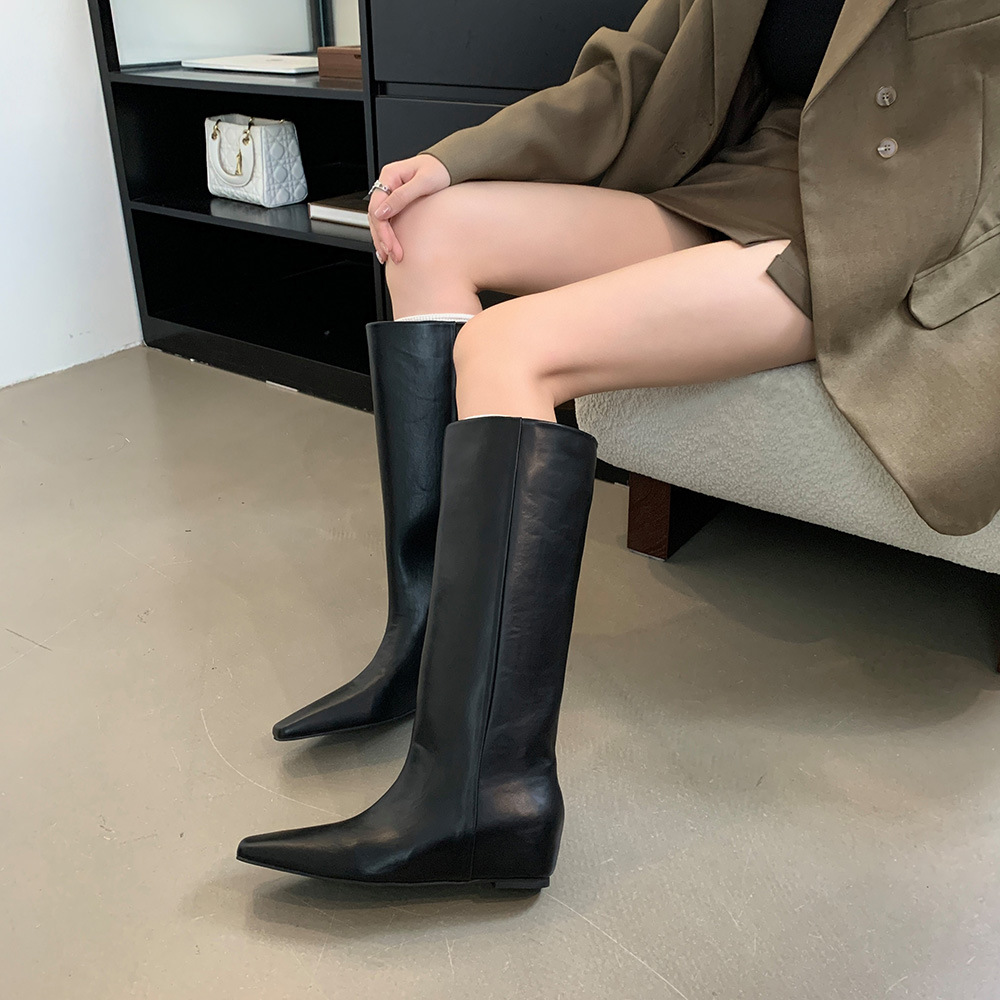 하이 부츠 2025 가을 겨울 신상 블랙 복고풍 무릎 위 패션 부츠 여성 심플 포인티드 스트레이트 라이더 부츠