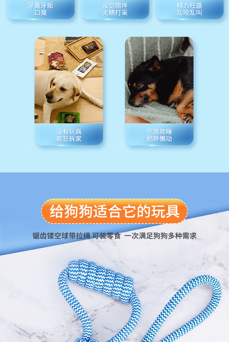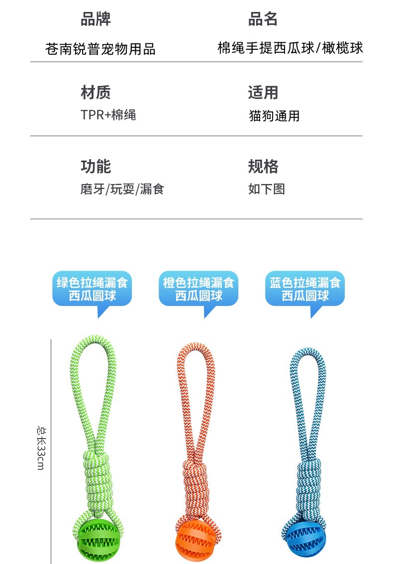 강아지 장난감 내구성 있는 물린다마치지 않는 수박볼 면로프 간식볼 인터랙티브 줄다리기 로프 매듭 애완동물 도매 해외 인기 상품스토어 가기