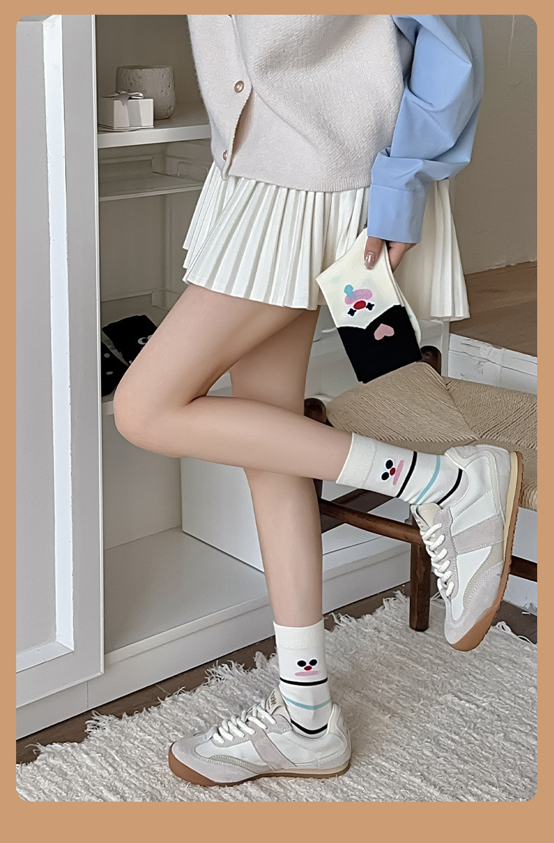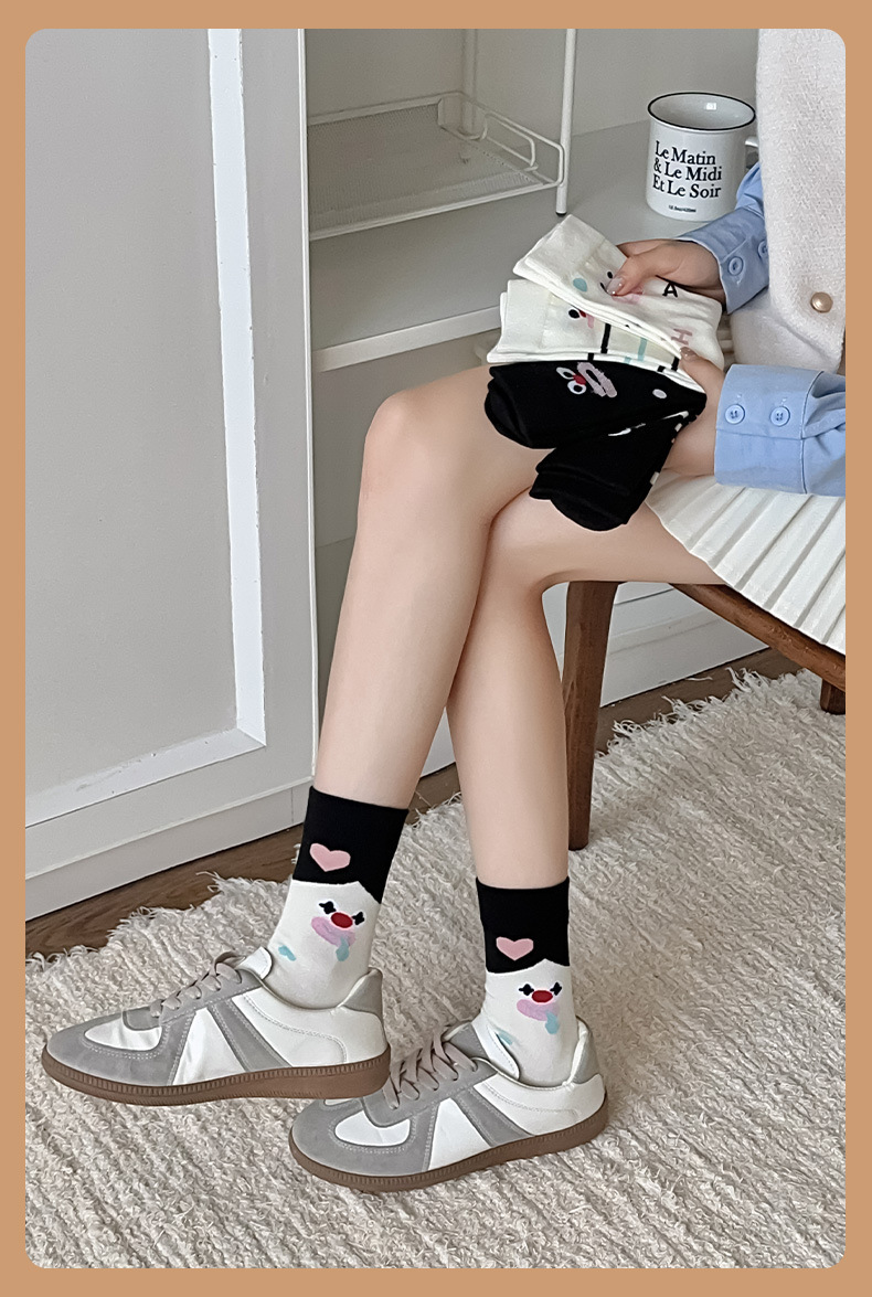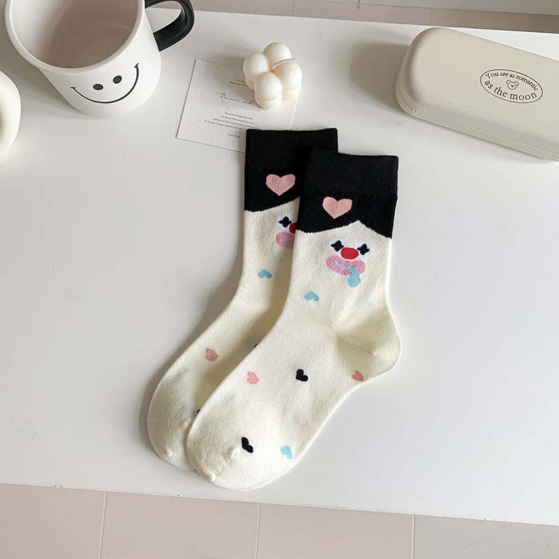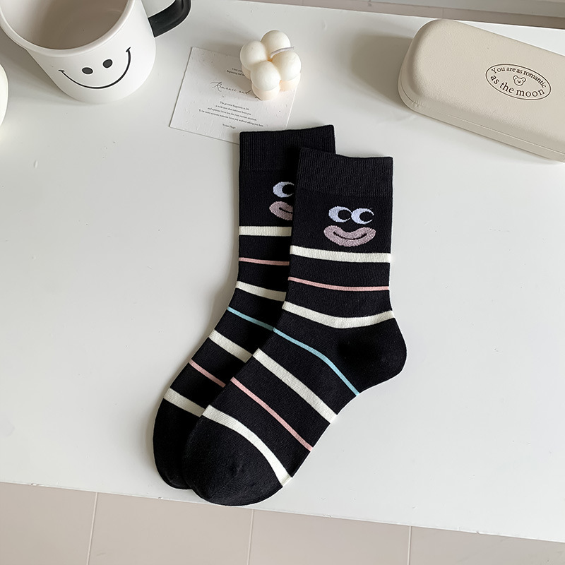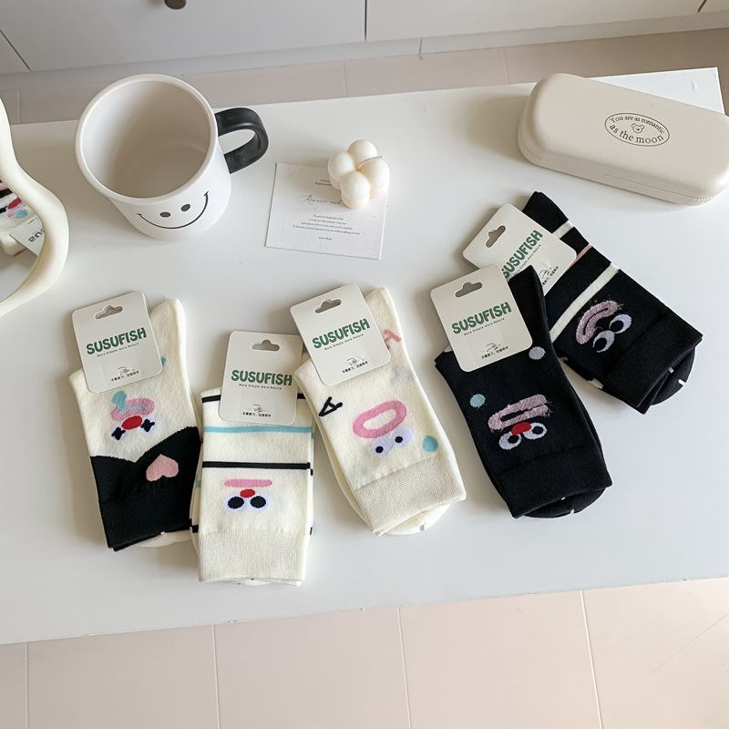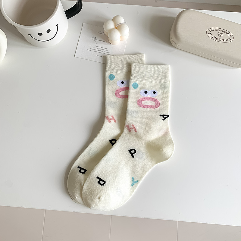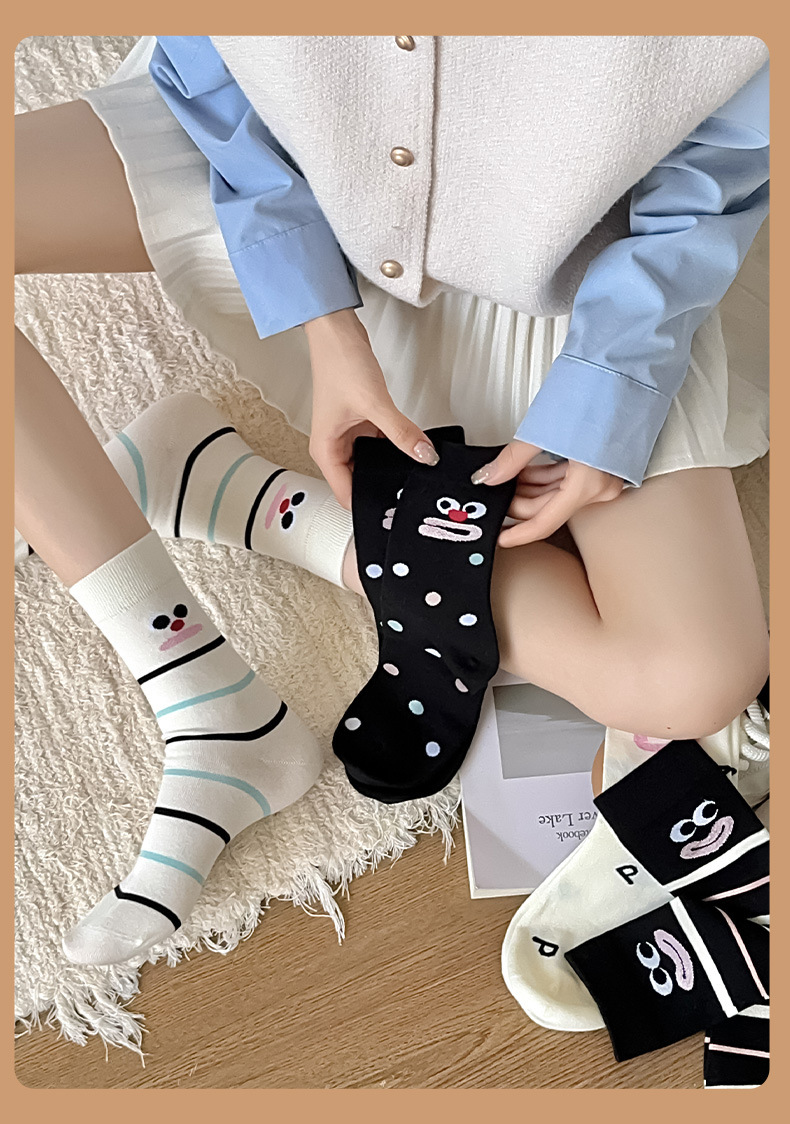 한국 스타일 양말 여성의 가을과 겨울 새로운 만화 표현 중간 양말 빗 코튼 뼈없는 양말 귀여운 스타킹