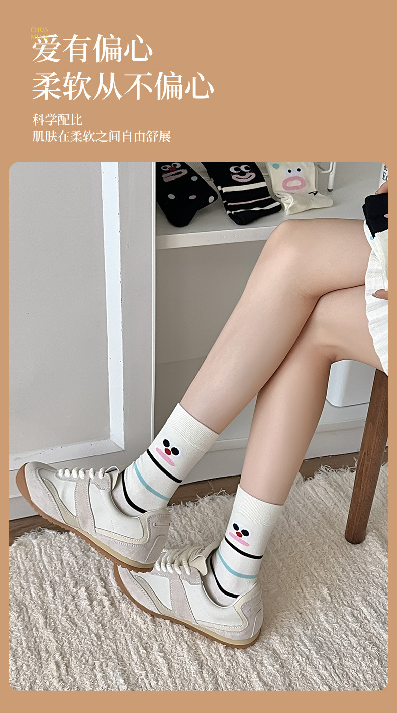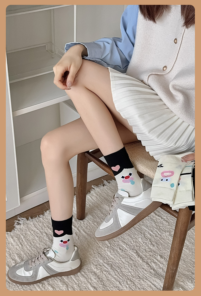 한국 스타일 양말 여성의 가을과 겨울 새로운 만화 표현 중간 양말 빗 코튼 뼈없는 양말 귀여운 스타킹스토어 가기