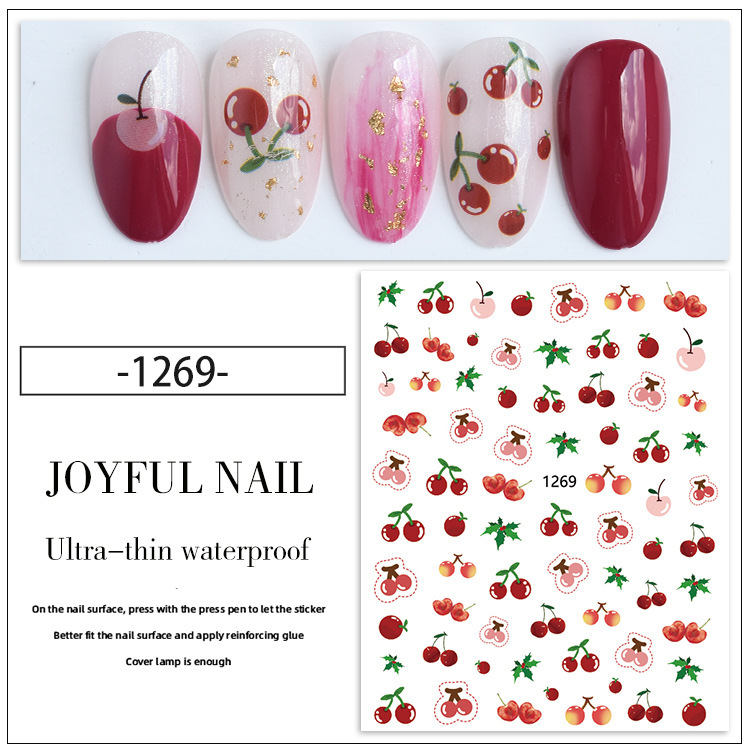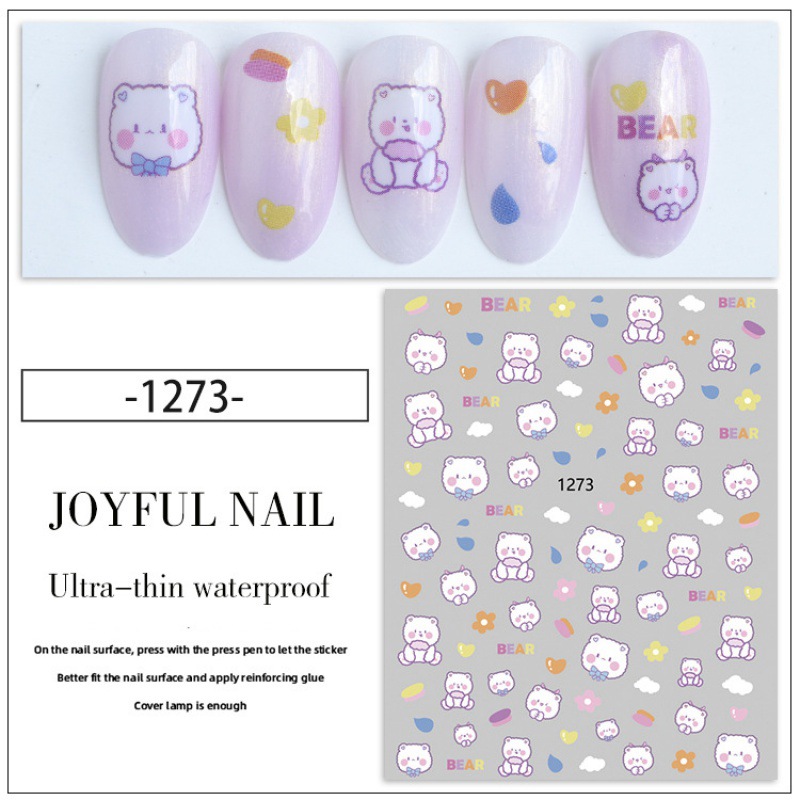 만화 딸기곰 네일 스티커 토끼 딸기곰 체리 키티 고양이 귀여운 어린이 네일 스티커
