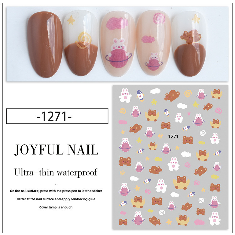만화 딸기곰 네일 스티커 토끼 딸기곰 체리 키티 고양이 귀여운 어린이 네일 스티커스토어 가기