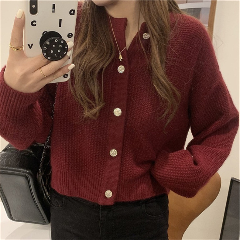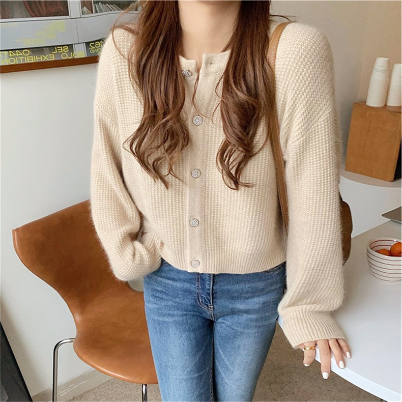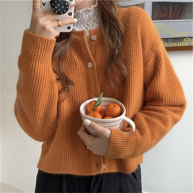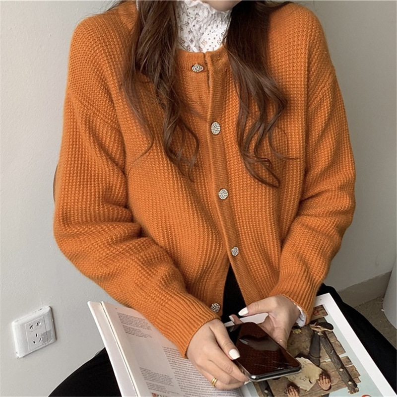 일본 복고풍 스웨터 코트 여자 2024 년 가을 겨울 새 느슨한 둥근 목 단색 한국 스타일 작은 니트 카디건