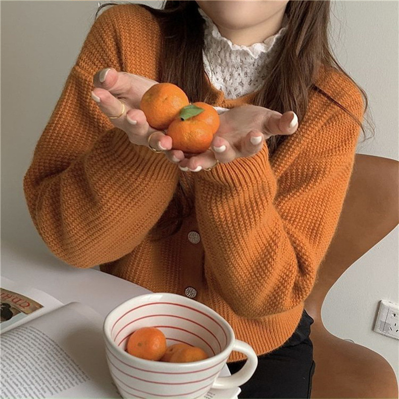 일본 복고풍 스웨터 코트 여자 2024 년 가을 겨울 새 느슨한 둥근 목 단색 한국 스타일 작은 니트 카디건스토어 가기