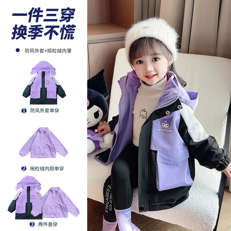Kulomi Girl's Jacket 3 대 1 분리 가능한 어린이 코트 코트 아기 소녀의 2024 년 새 봄과 가을 옷