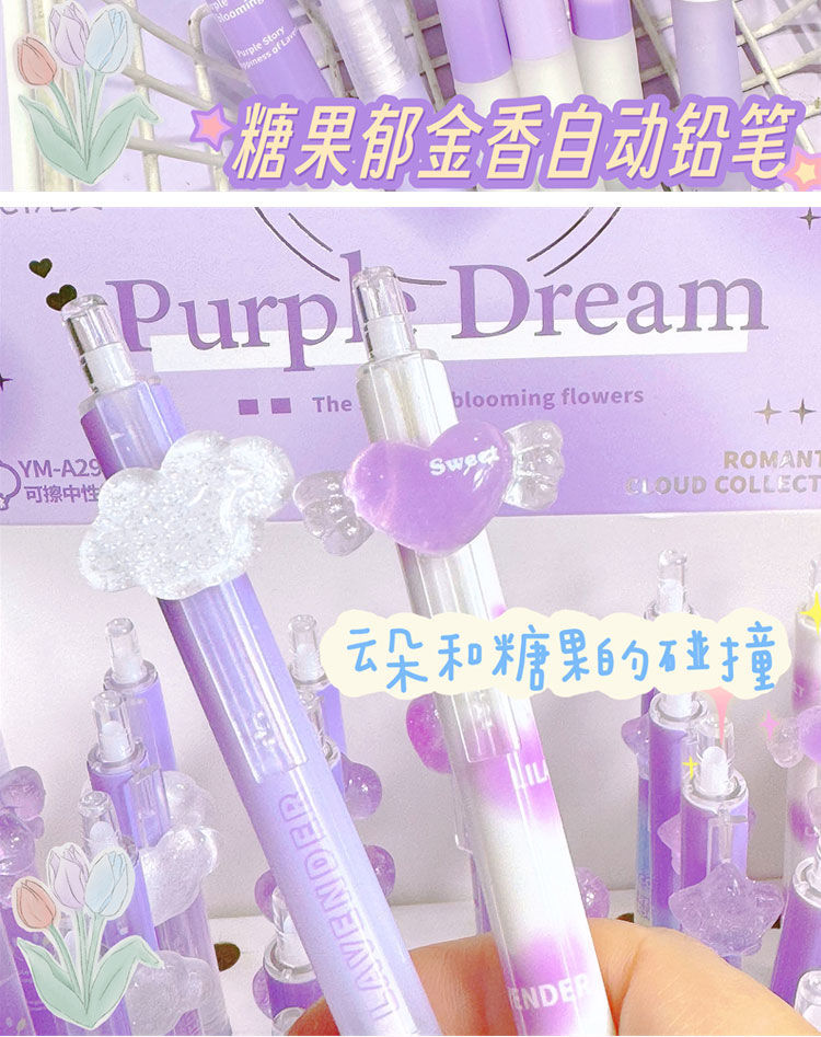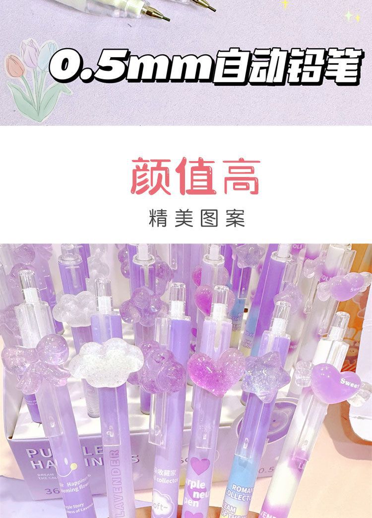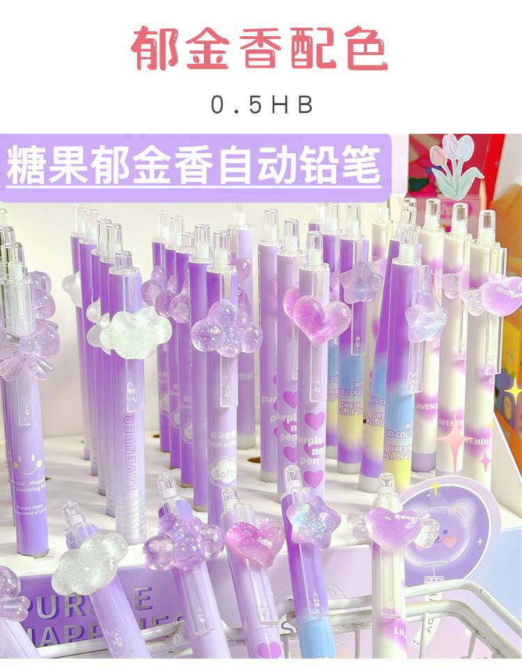 보라색 꿈 기계 연필 0.5mm 높은 색상 가치 학생 프레스 연필 쓰기 튤립 색상스토어 가기