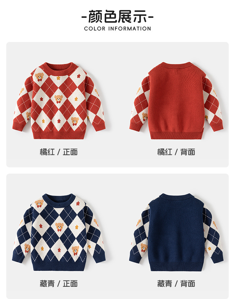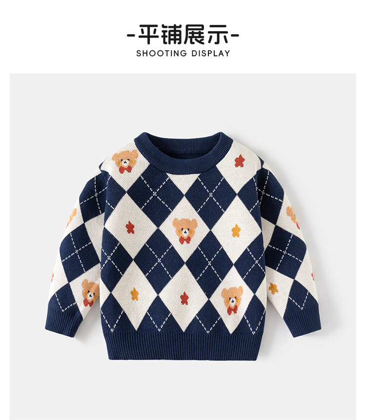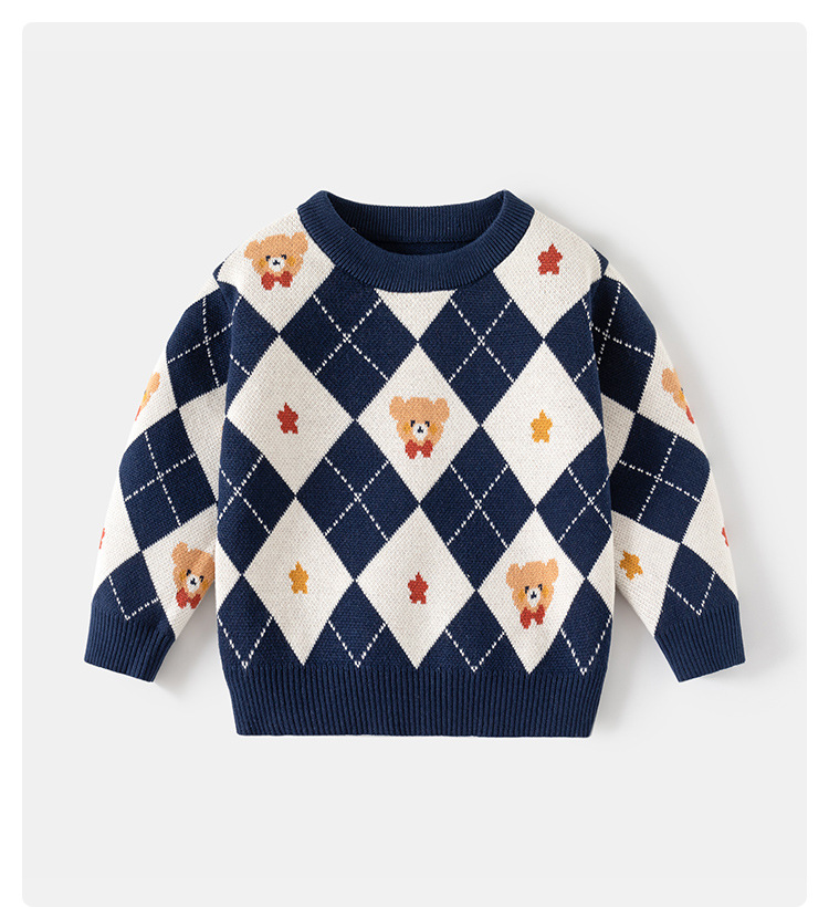 소년 스웨터 가을과 겨울 2024 새로운 어린이 소년 마름모 니트웨어 중소형 어린이 바닥 셔츠 아동복 도매스토어 가기