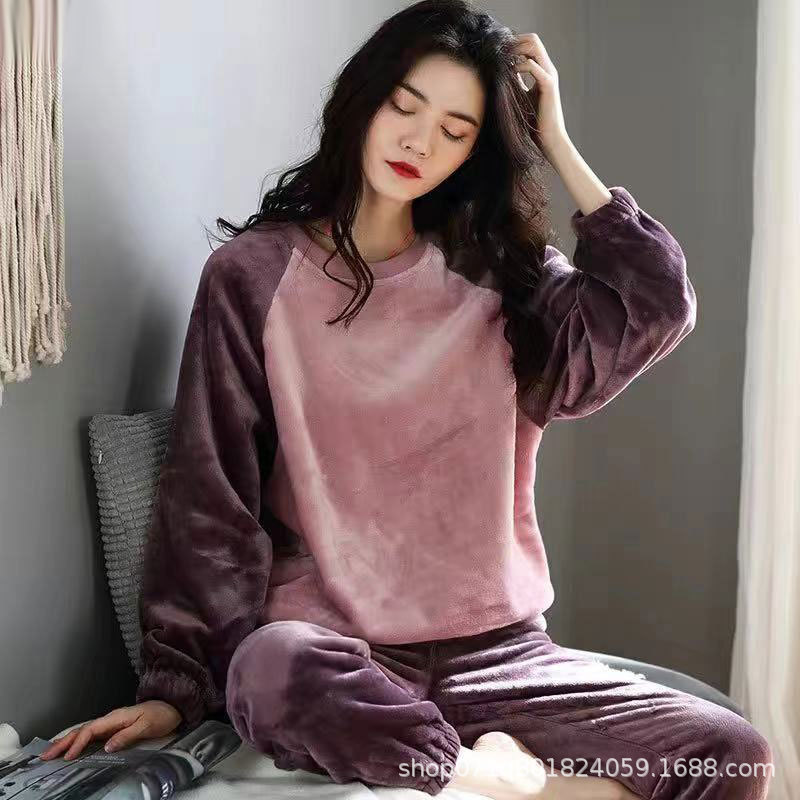플란넬 잠옷 여성용 가을 겨울 외출복 투피스 세트 겨울용 플리스 심플 여성 세트 겨울용 두꺼운 보온스토어 가기