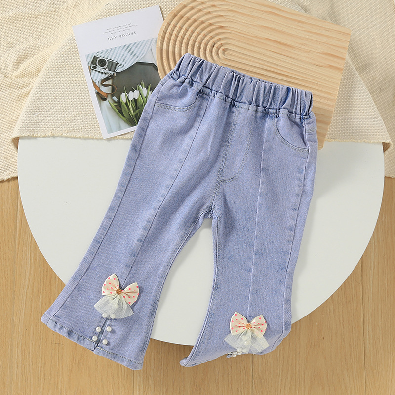 소녀 청바지 봄과 가을 2024 새로운 아동복 어린이 바지 가을 중소형 어린이 어린 소녀 경적 바지스토어 가기