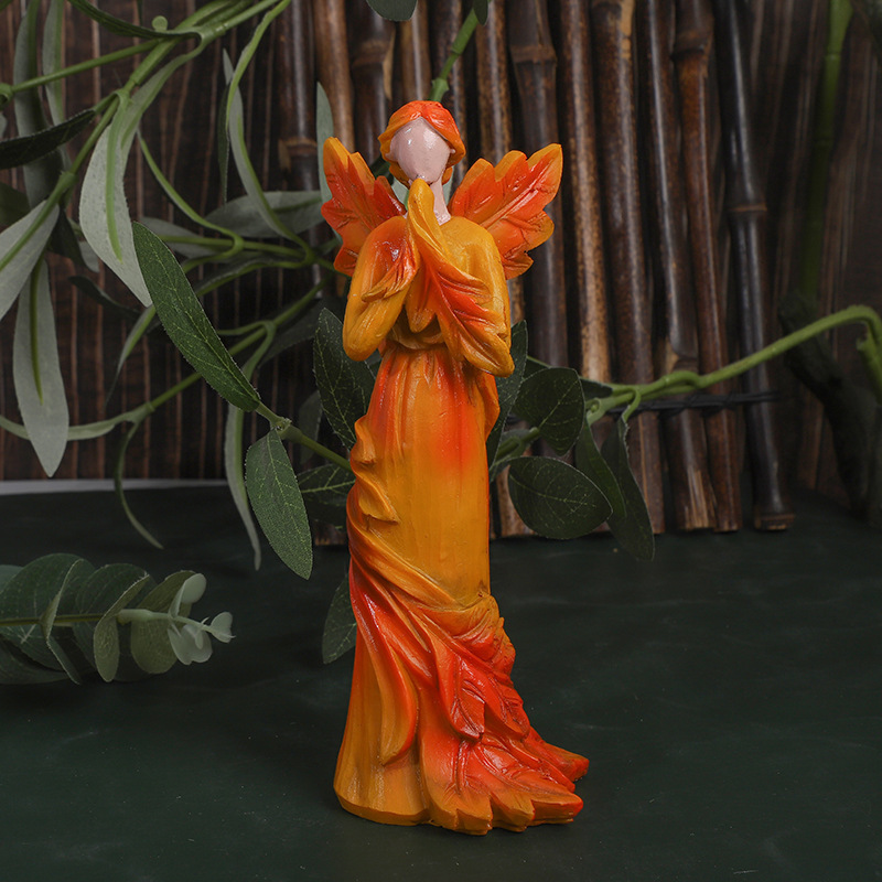 국경을 넘는 새로운 창조적 인 복고풍 무릎을 꿇는 역 독립 역 가을 단풍 나무 날개 천사 바탕 화면 장식 장식품 도매