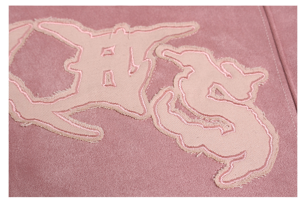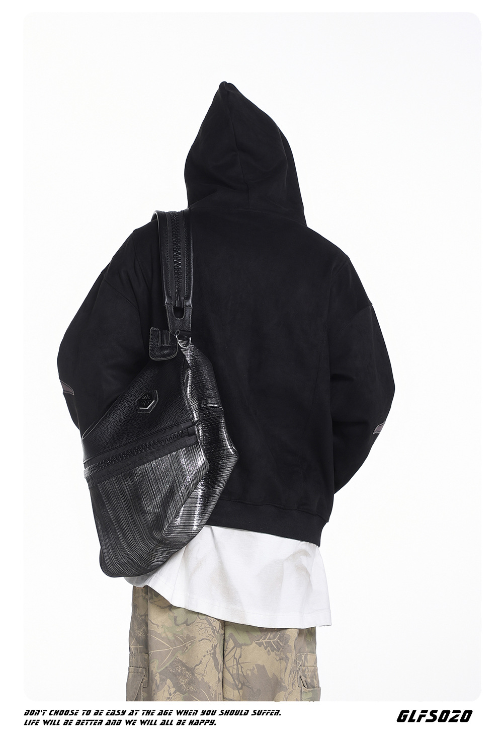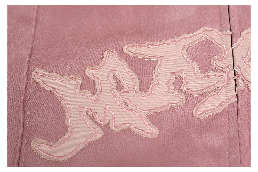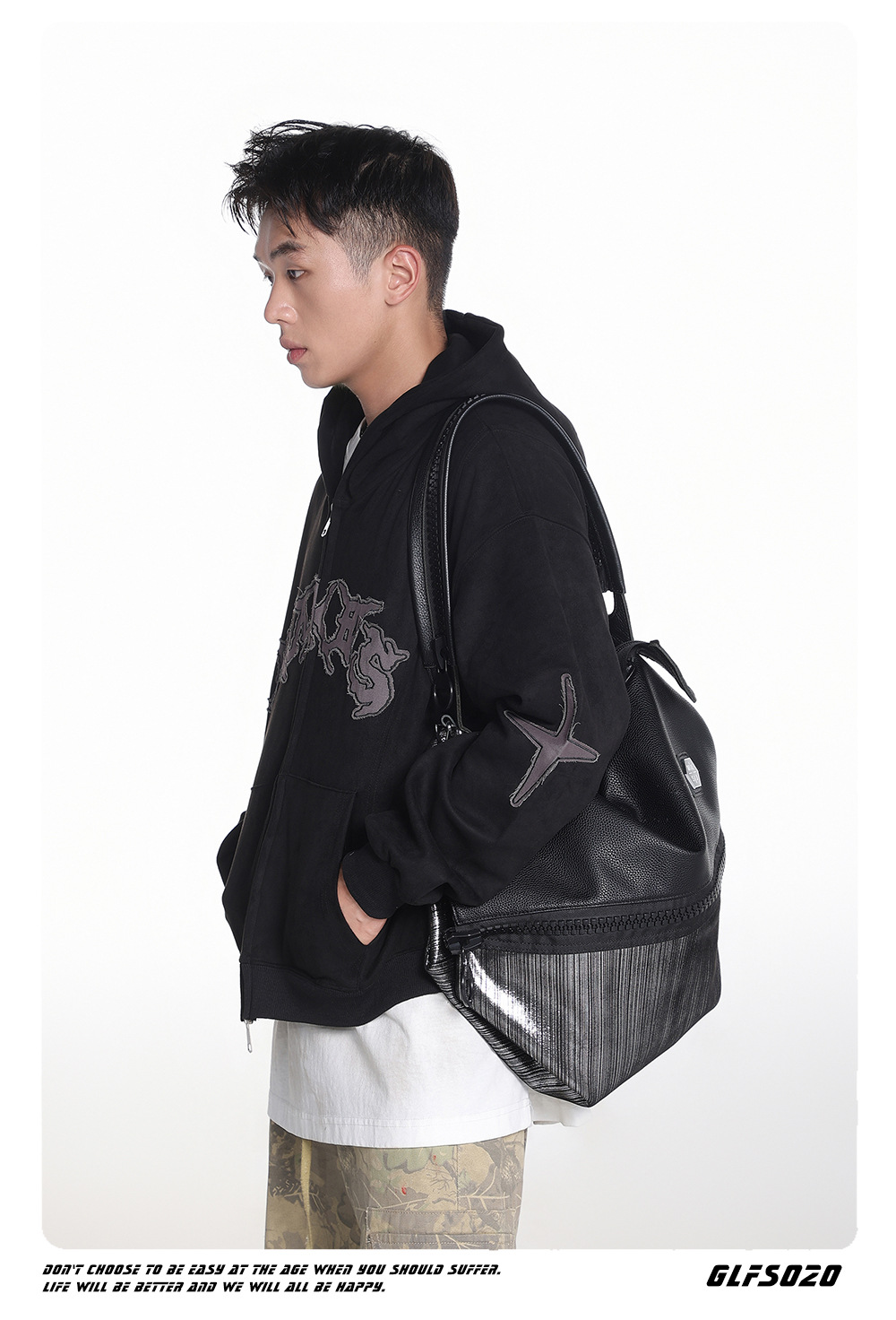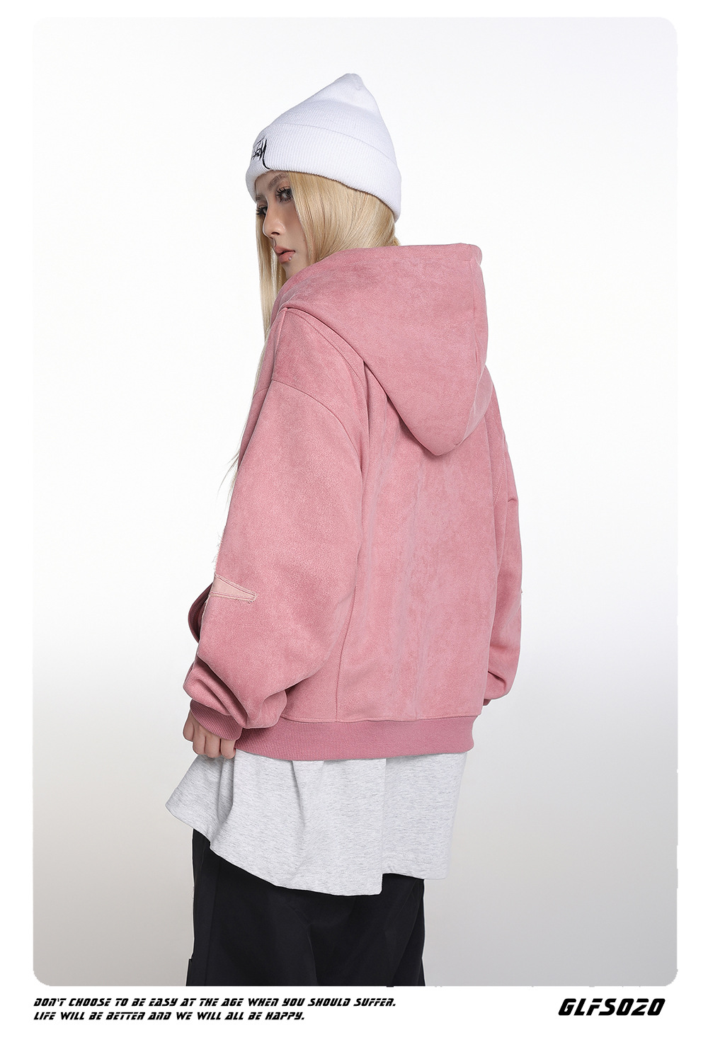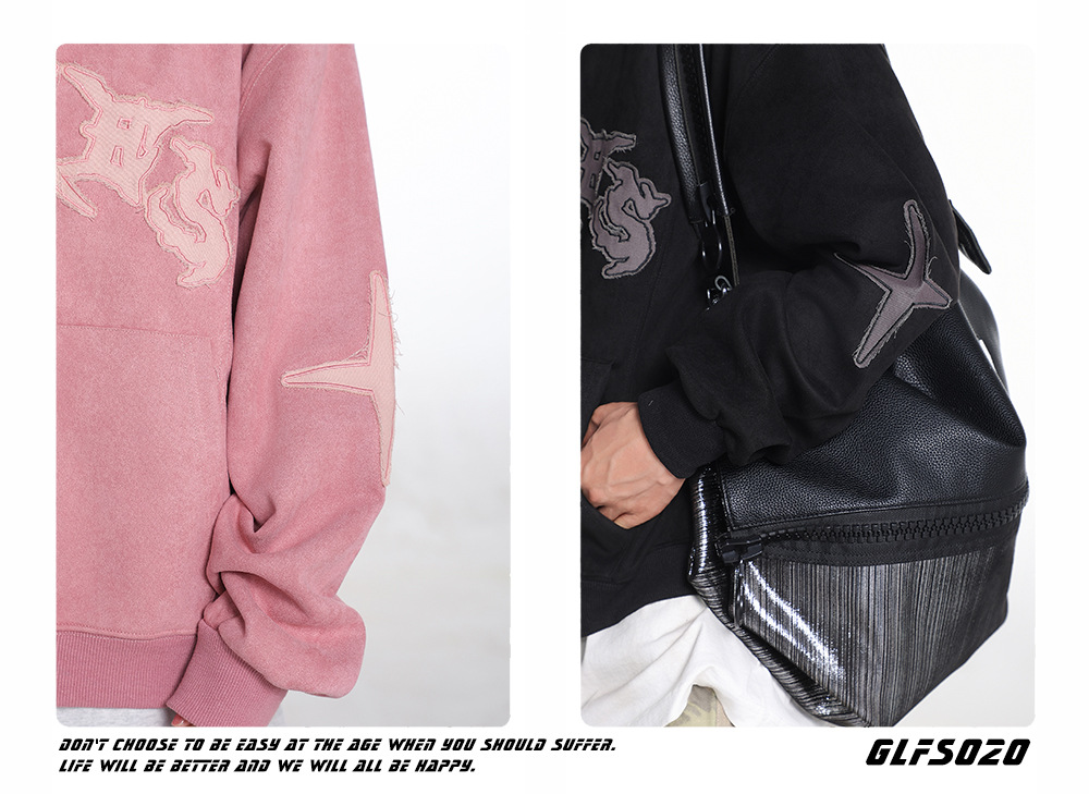 GLFS2025 가을 남성과 여성의 느슨한 짧은 미국 문자 자수 스플 라이스 카디건 지퍼 스웨이드 스웨트 후드