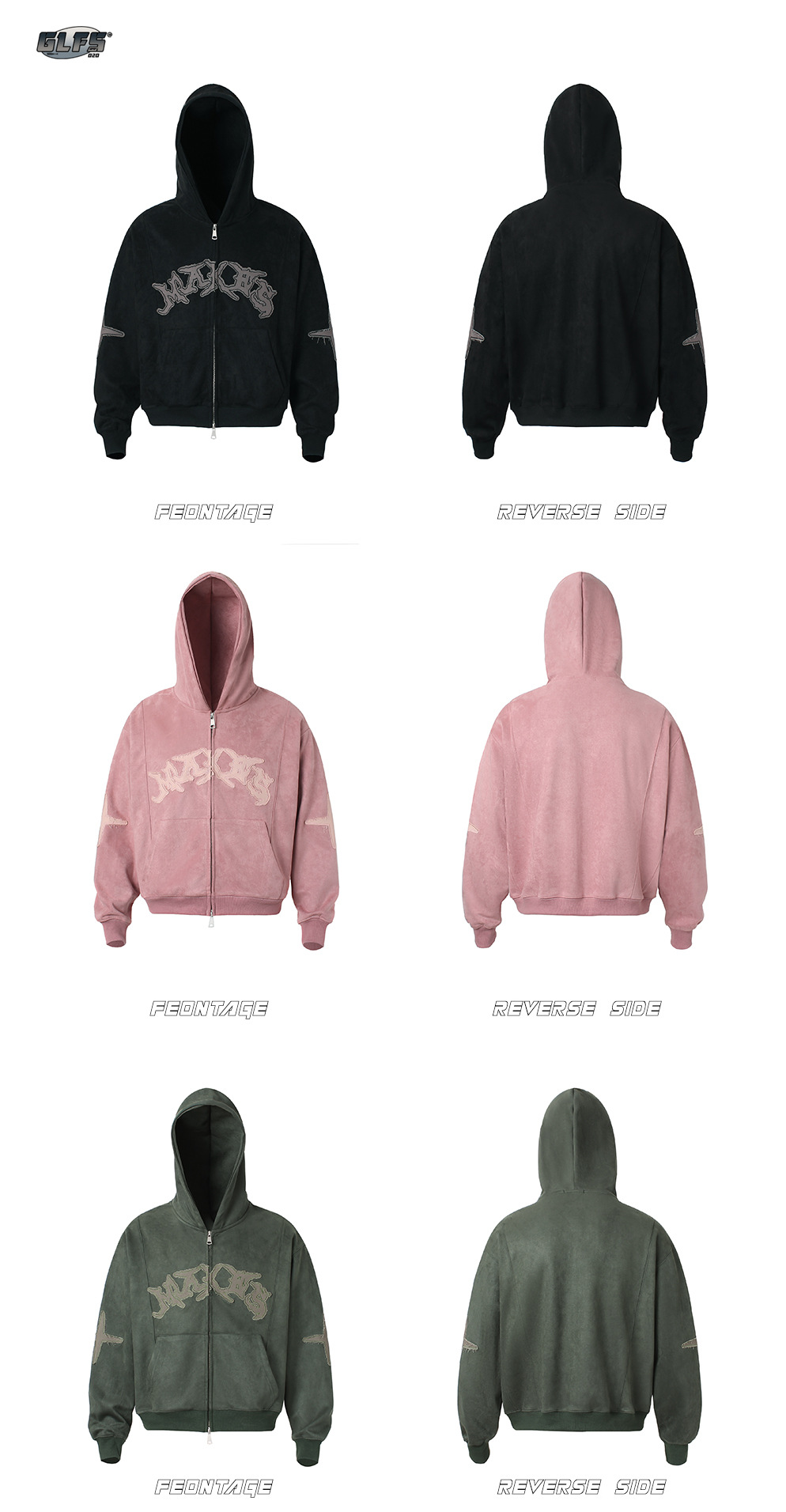 GLFS2025 가을 남성과 여성의 느슨한 짧은 미국 문자 자수 스플 라이스 카디건 지퍼 스웨이드 스웨트 후드스토어 가기