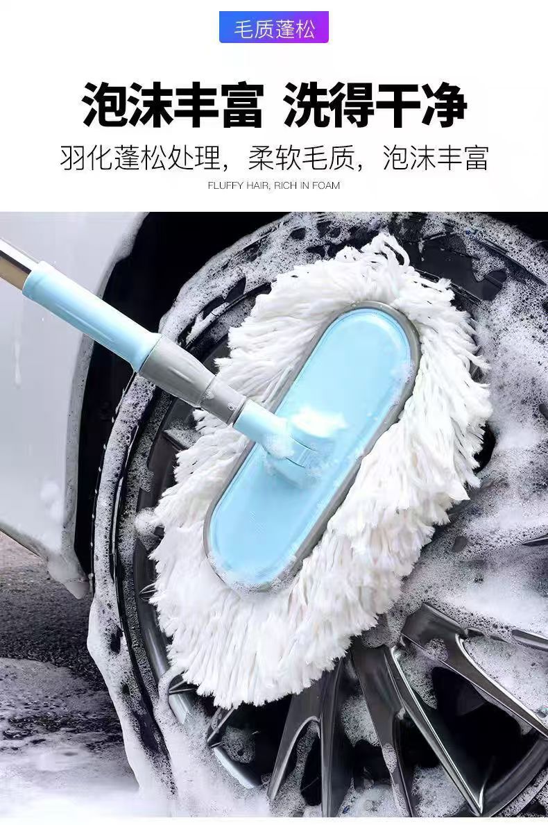 세차 먼지 제거 회전형 걸레 도구, 자동차 닦기용 신축형 긴 손잡이 브러시, 부드러운 털 녹 방지 자동차 세차 도구