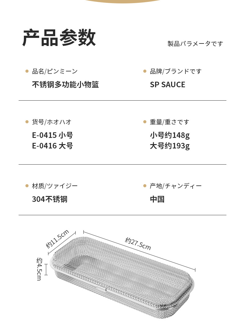 • 스테인레스 스틸 다기능 소형 바구니/소형 단일 팩