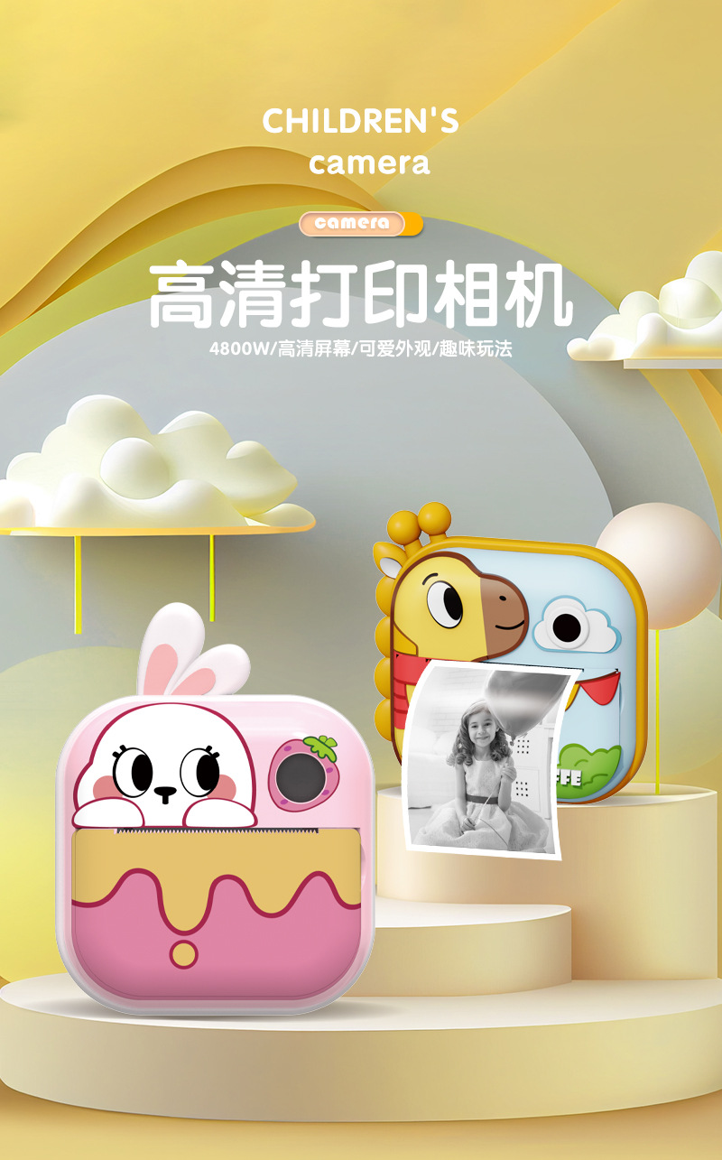 키즈 토끼 기린 만화 폴라로이드 카메라 인쇄 디지털 학생 인쇄 생일 선물 귀여운 플레이스토어 가기