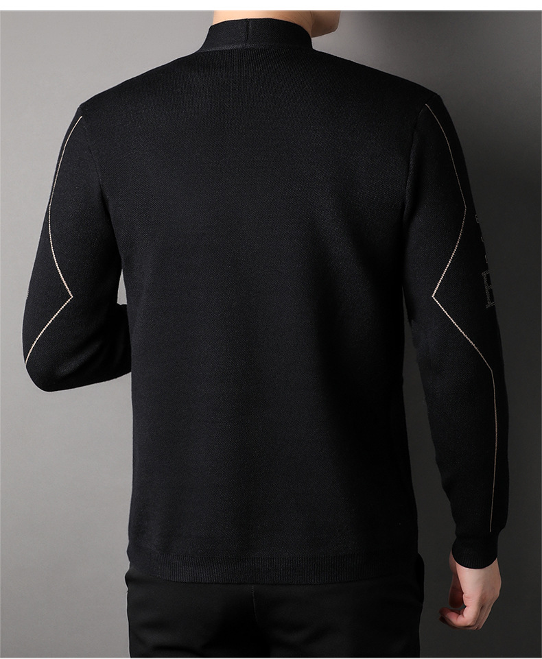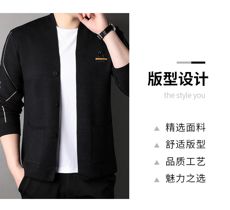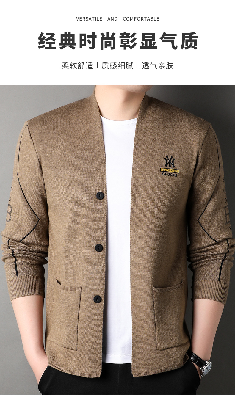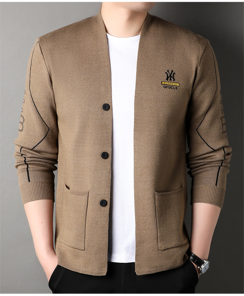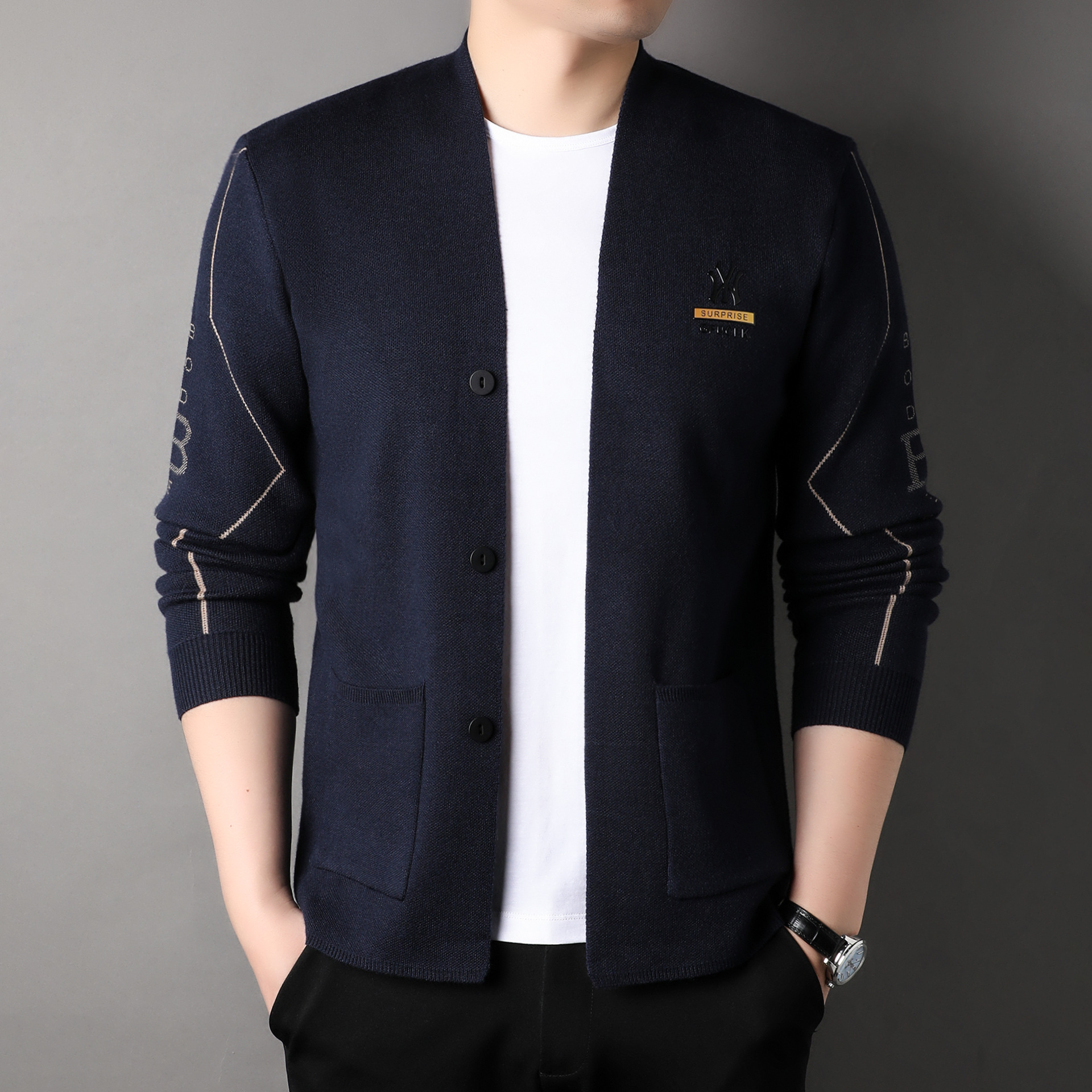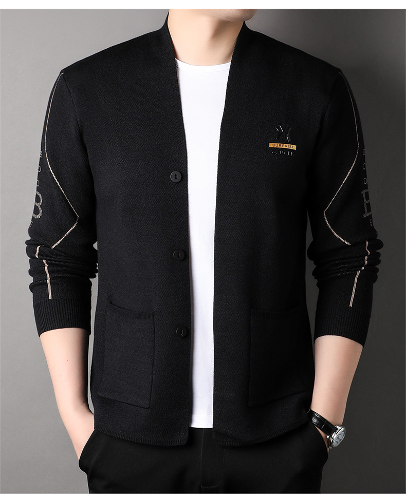 남자 가을 겨울 새 인쇄 리얼 포켓 3 버튼 니트 긴 소매 카디건 재킷 한국 캐주얼 올 매치 탑
