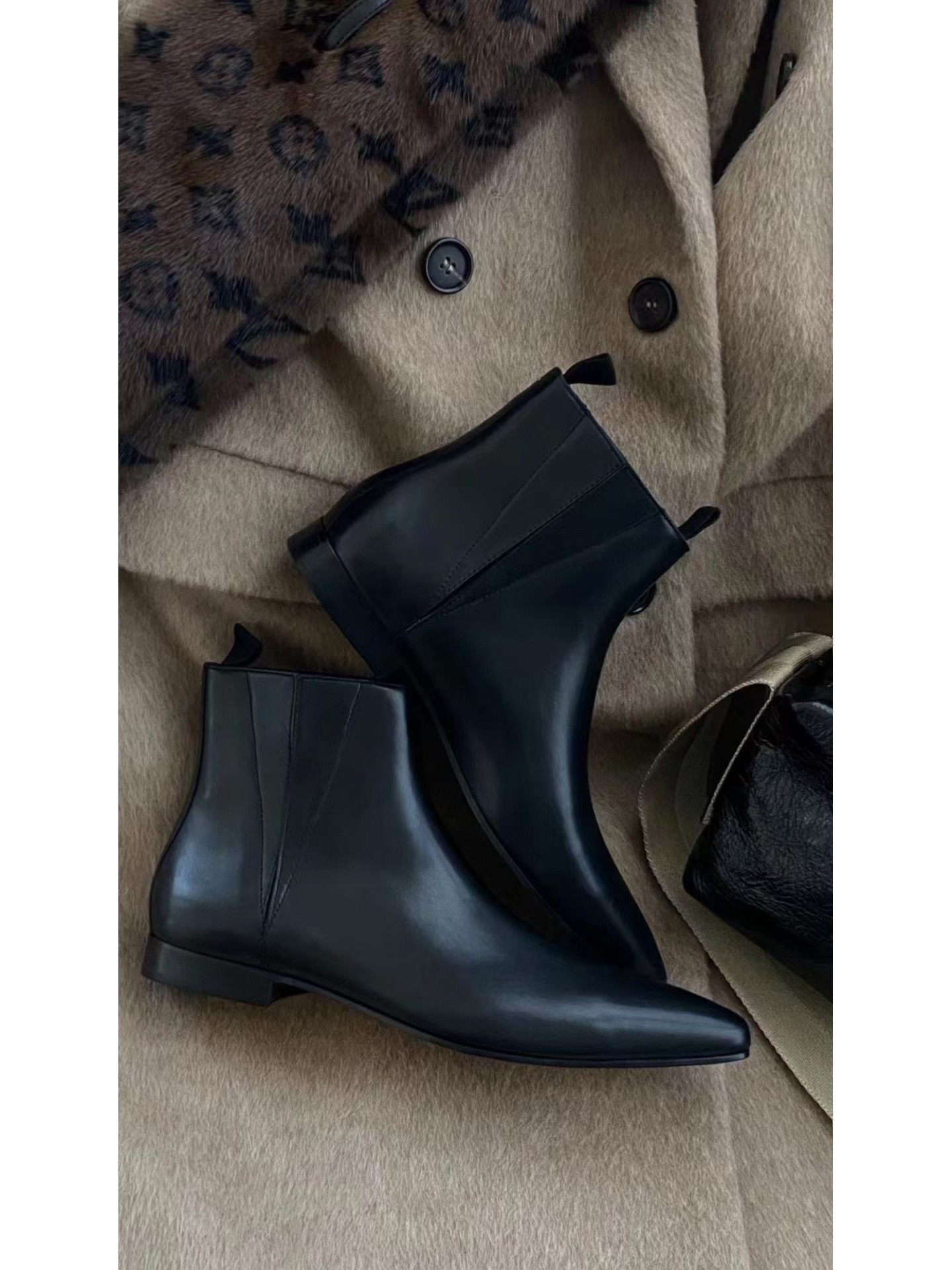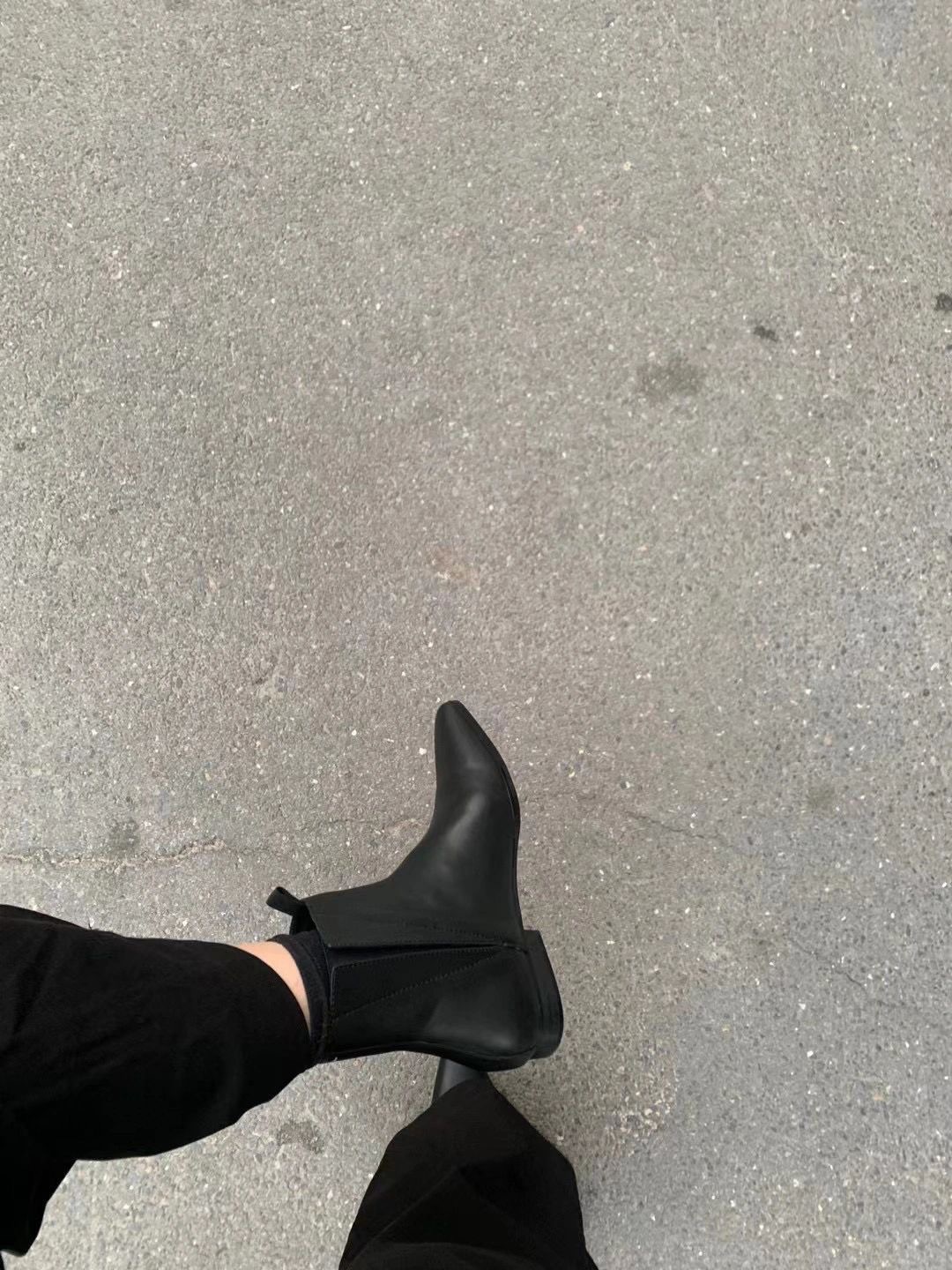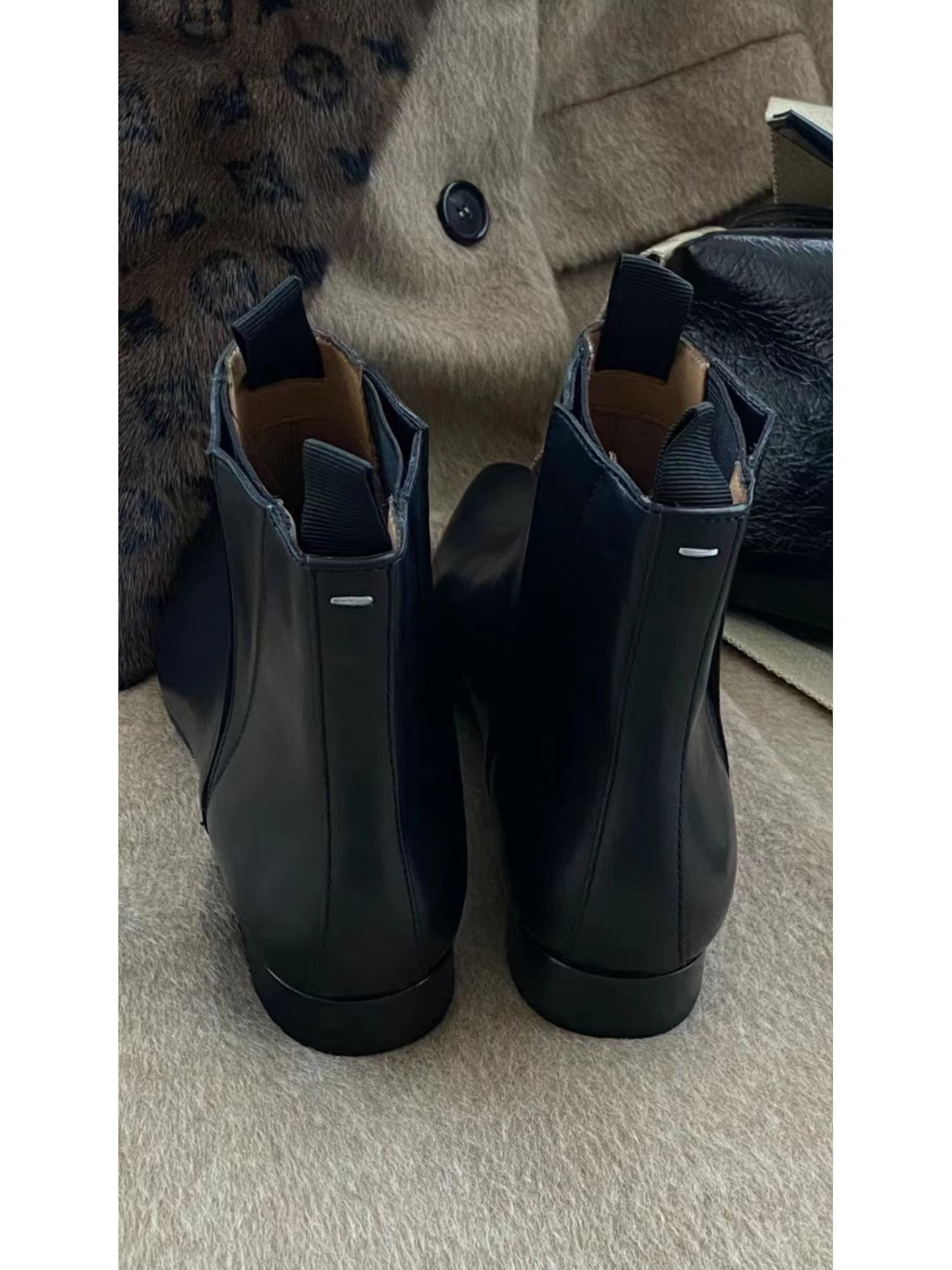 빈티지 정품 가죽 틈새 프랑스 포인팅 첼시 부츠 여성용 가을 및 겨울 짧은 부츠 플랫 작은 알몸 부츠 마틴 부츠 얇은 부츠스토어 가기