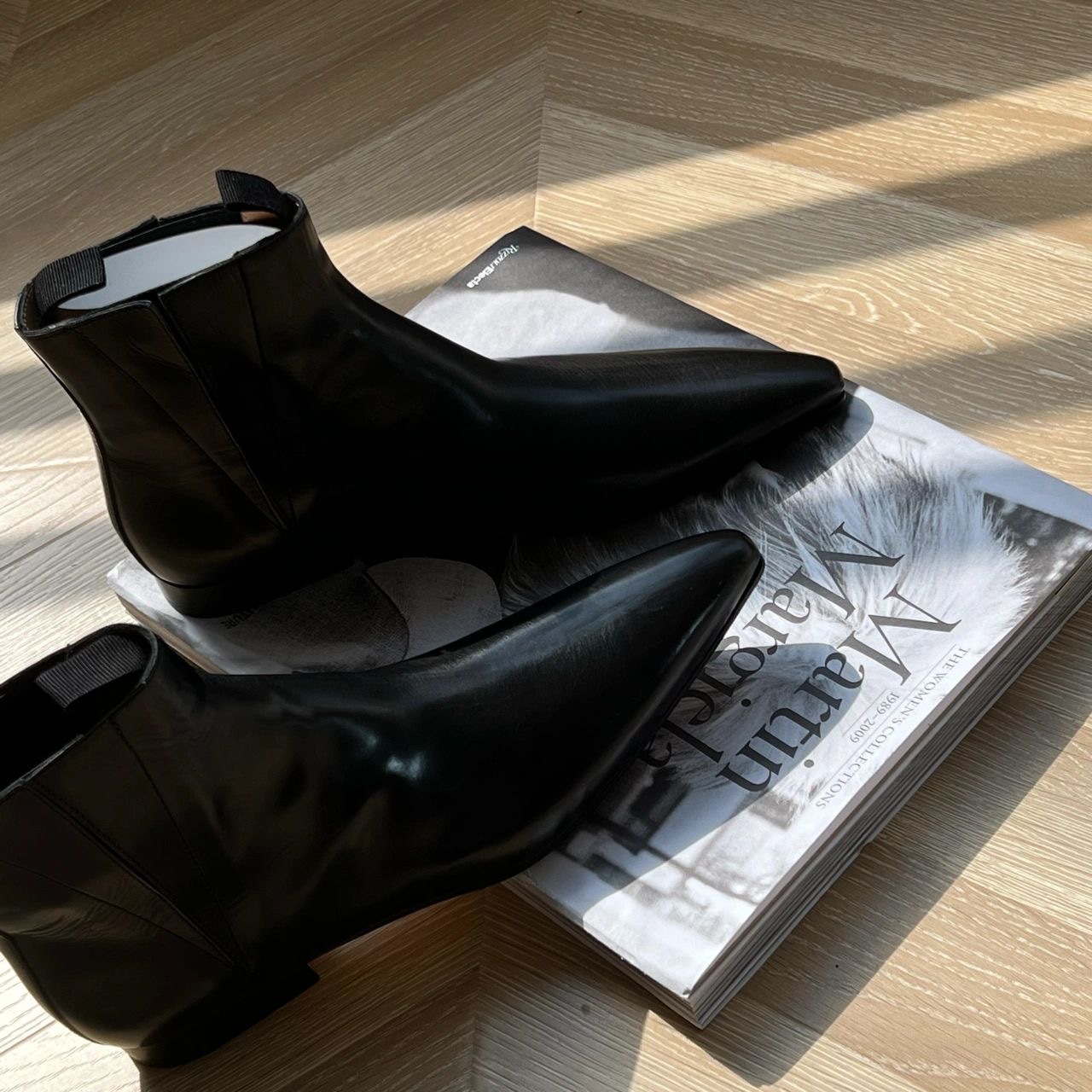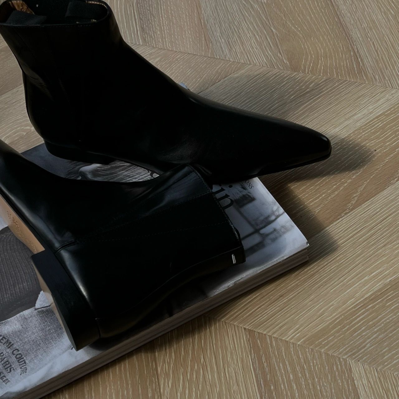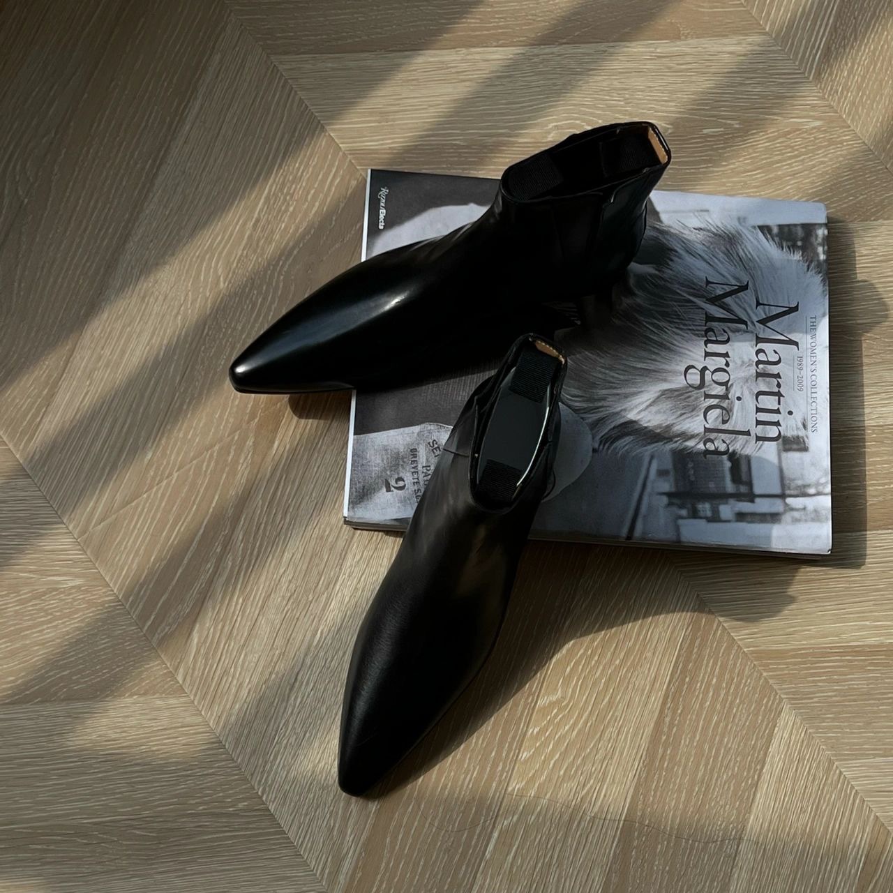 빈티지 정품 가죽 틈새 프랑스 포인팅 첼시 부츠 여성용 가을 및 겨울 짧은 부츠 플랫 작은 알몸 부츠 마틴 부츠 얇은 부츠스토어 가기