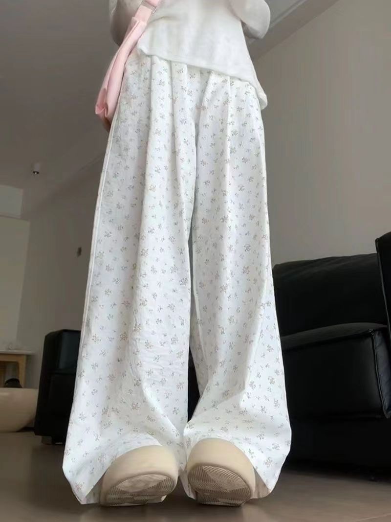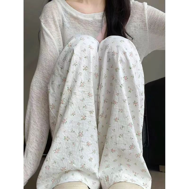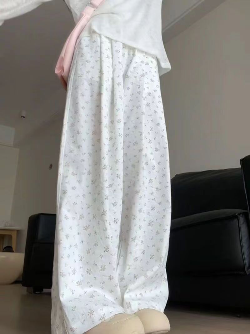 2024 여름 한국 스타일 펜던트 루즈 스트레이트 레트로 꽃 캐주얼 바지 여성 일본식 캐주얼 학생 야마모토 바지스토어 가기