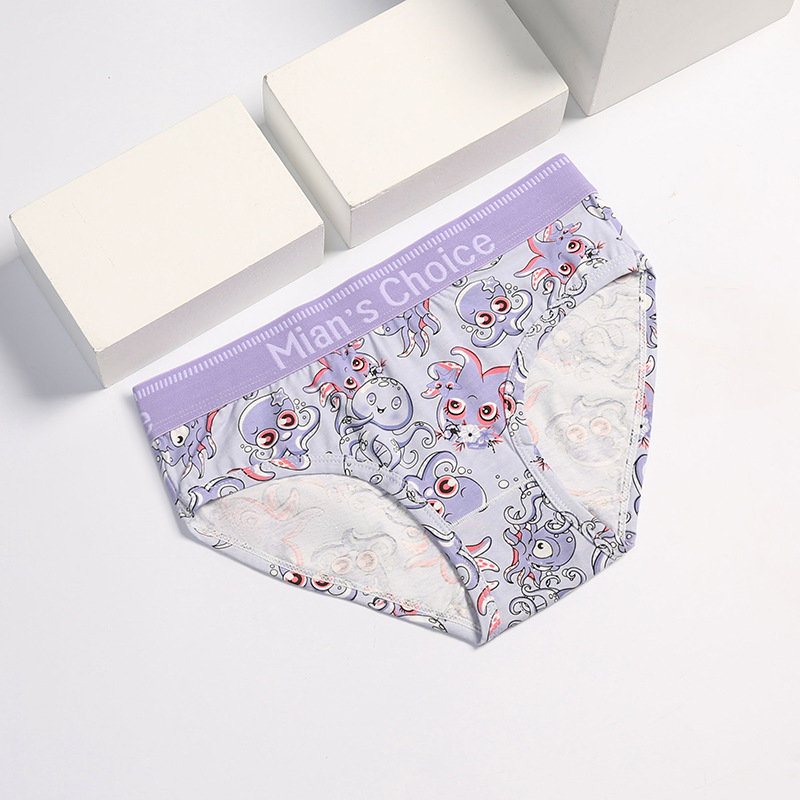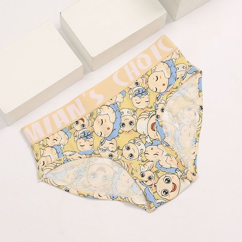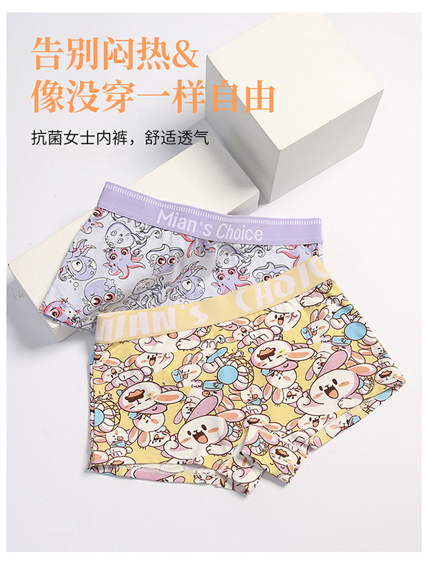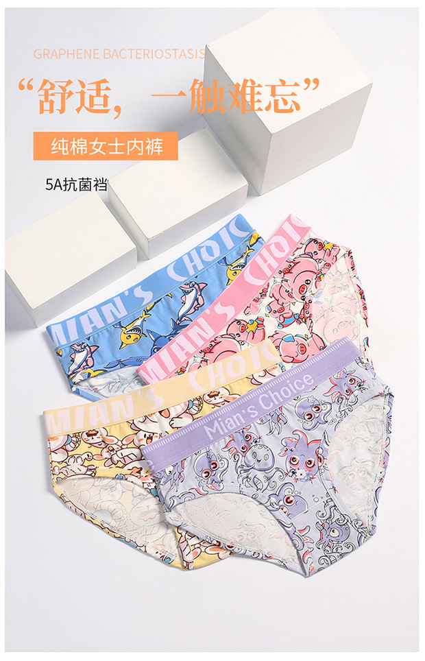 여성 만화 코튼 속옷 잘 생긴 t 귀여운 4 코너 삼각형 중간 허리 항균 가랑이 레 통기성 넓은 챙이 달린 스포츠 플러스 사이즈