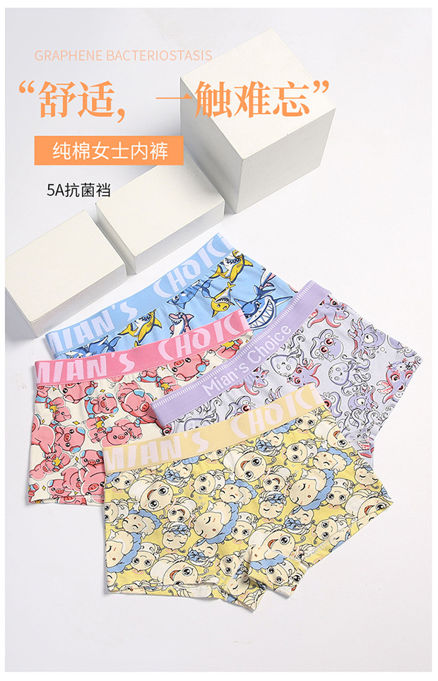 여성 만화 코튼 속옷 잘 생긴 t 귀여운 4 코너 삼각형 중간 허리 항균 가랑이 레 통기성 넓은 챙이 달린 스포츠 플러스 사이즈스토어 가기