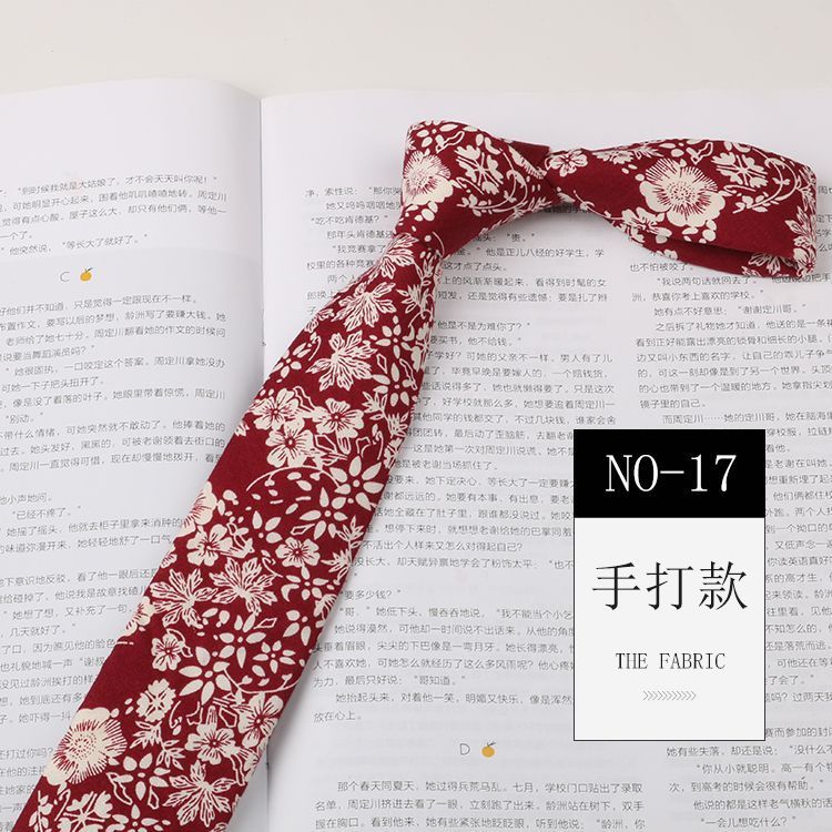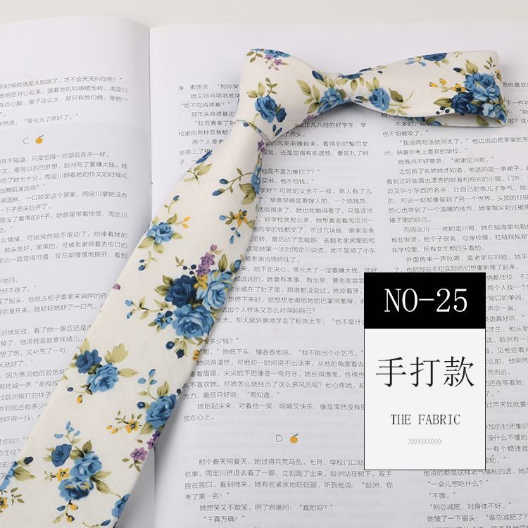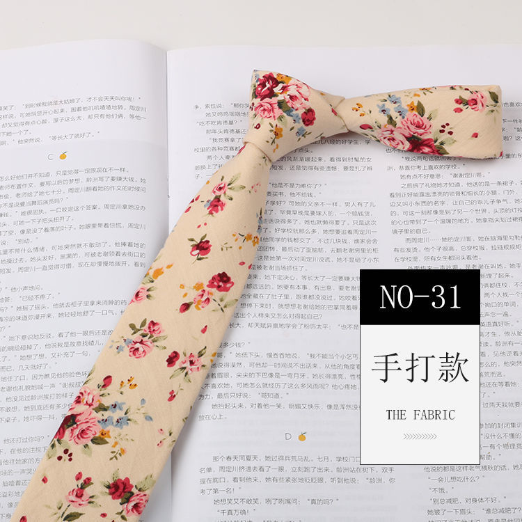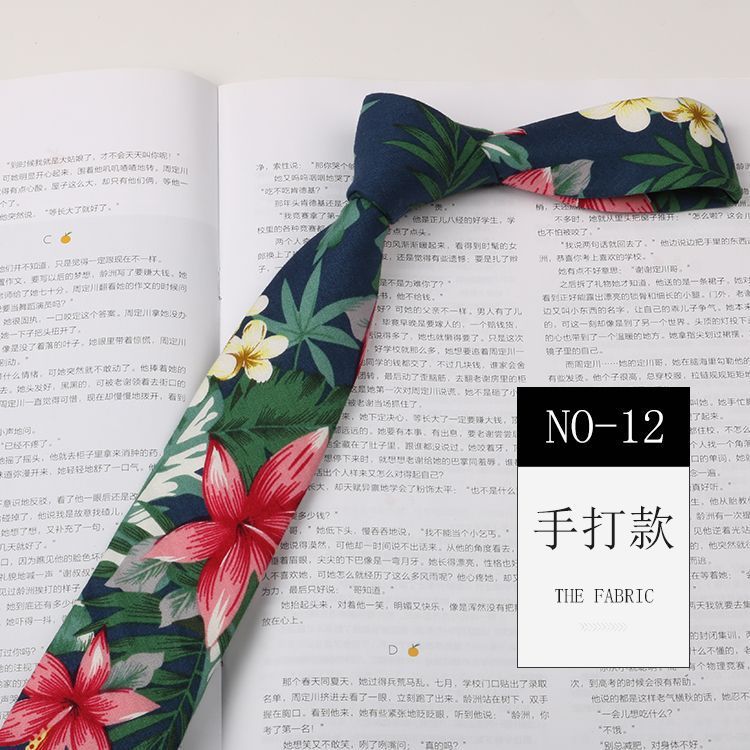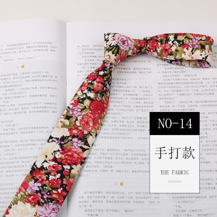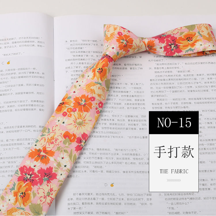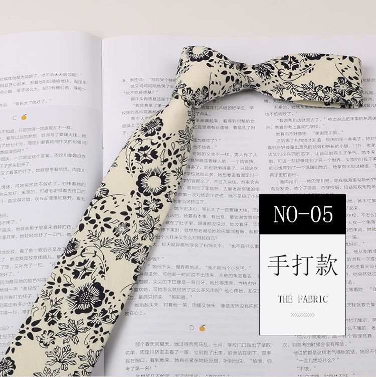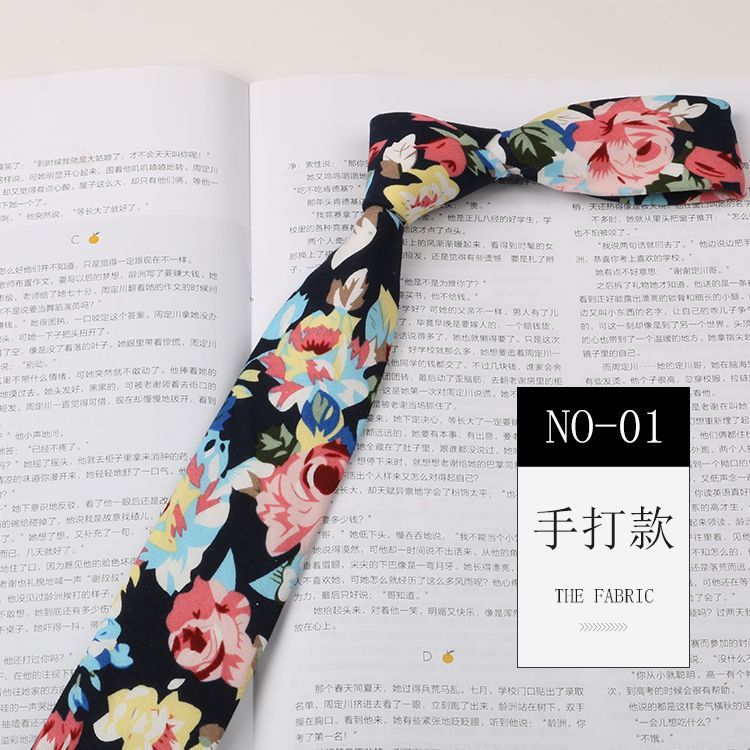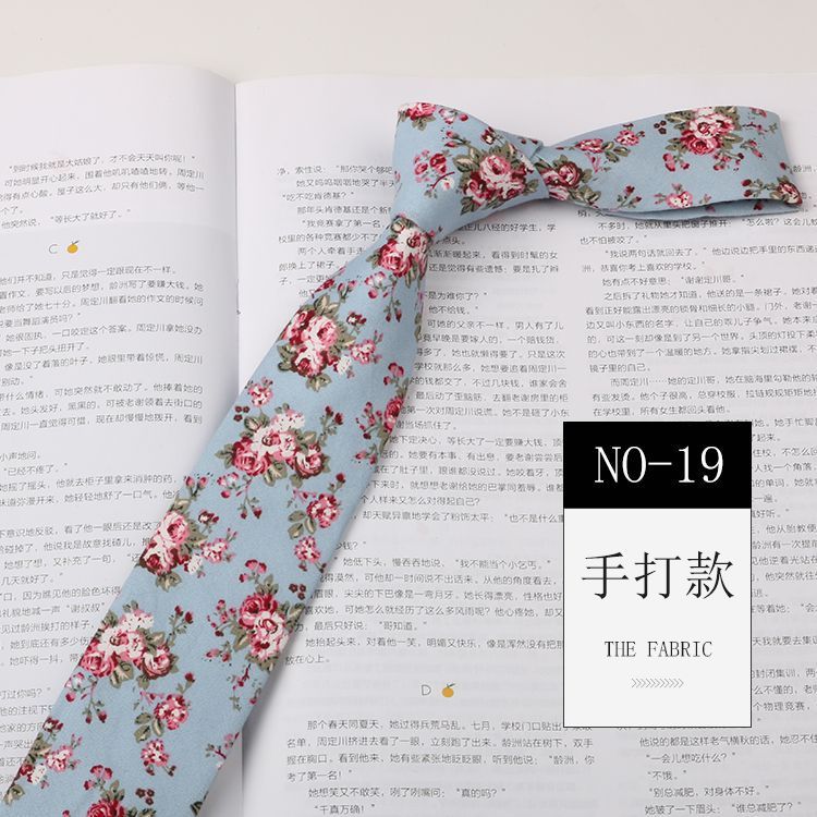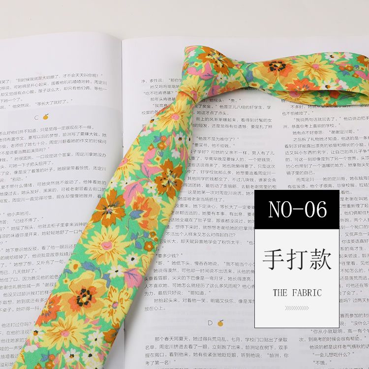 꽃 넥타이 남성용 패턴 면 셔츠 마카롱 컬러 인쇄 좁은 6cm 한국 스타일 캐주얼 여성 넥타이