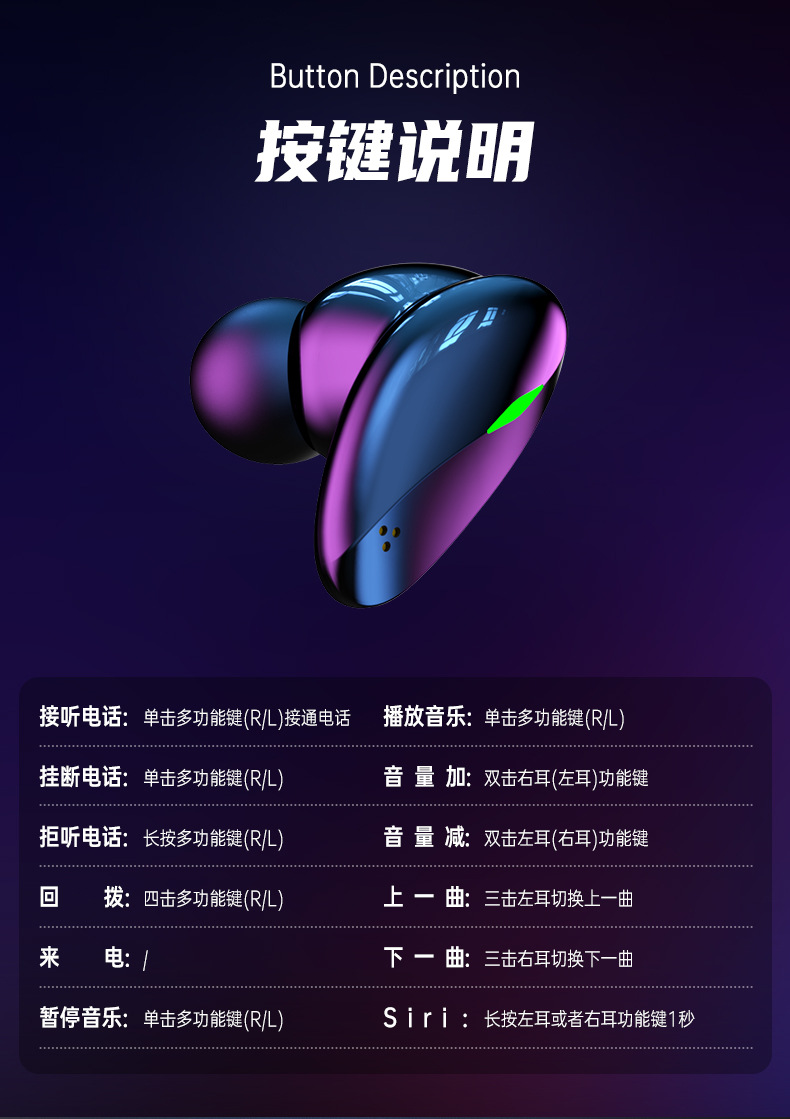 새로운 블루투스 헤드셋 리얼 무선 TWS 긴 내구성 바이나럴 스테레오 인 이어 게임