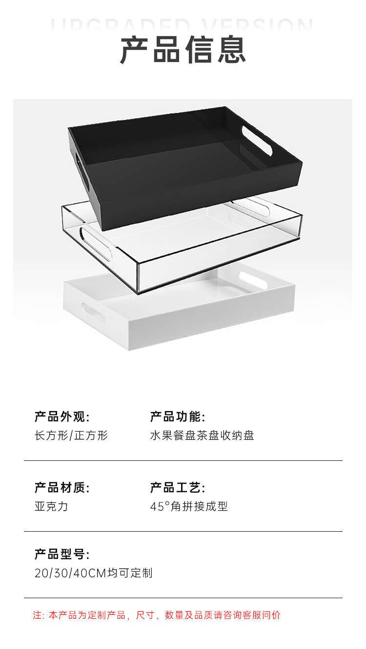 투명한 아크릴 트레이 가정용 호텔 화장실 슈퍼 저장 차 트레이 직사각형 아크릴 트레이