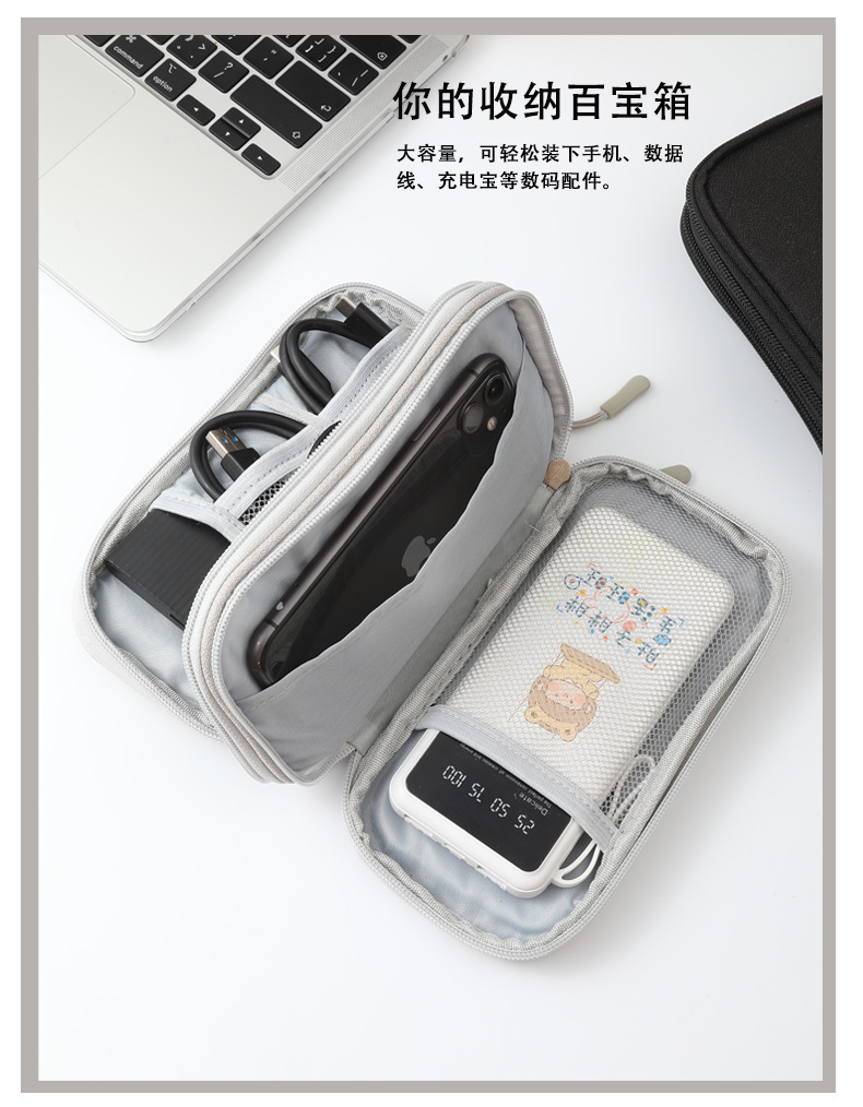 디지털 액세서리 다층 수납 가방 전원 공급 장치 하드 드라이브 보조 배터리 USB 드라이브 보호기 이어폰 방진 데이터 케이블스토어 가기