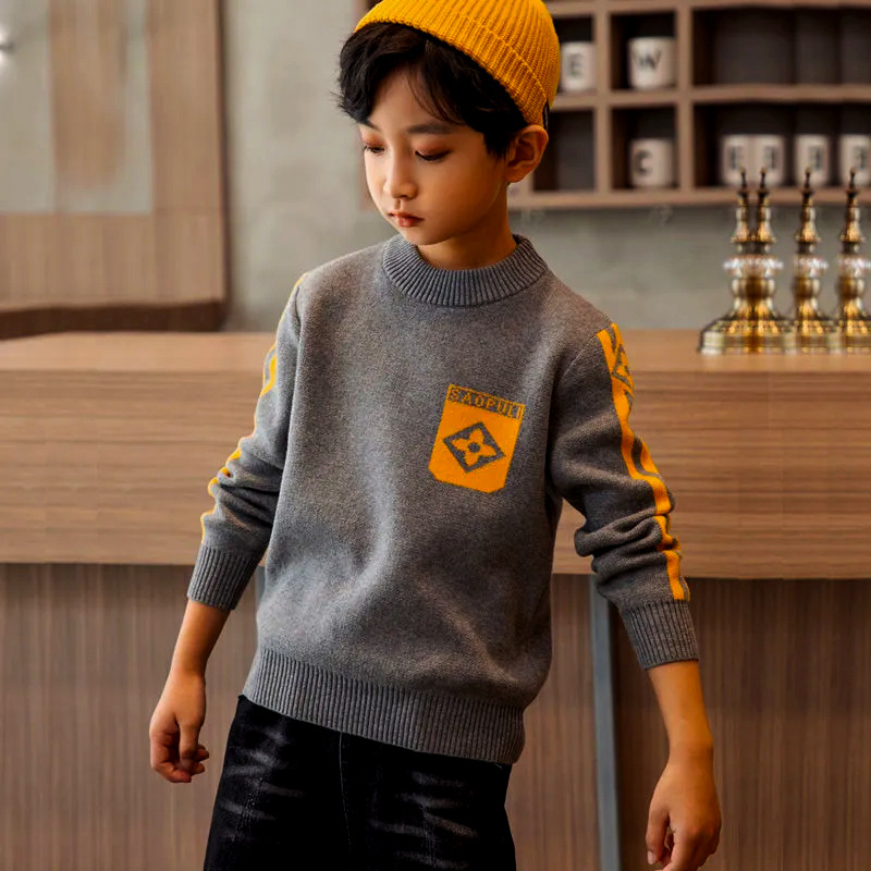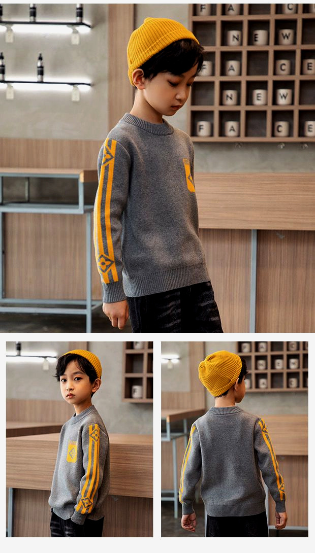 2025 가을 겨울 남아용 스웨터 캐주얼 학생용 중대형 어린이 라운드넥 니트웨어 8~15세 긴팔 두꺼운 보온성