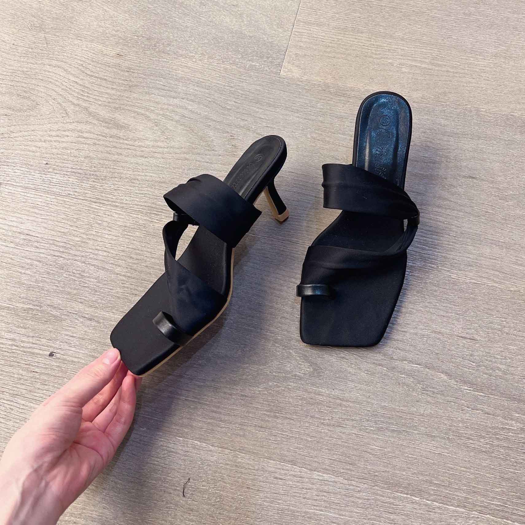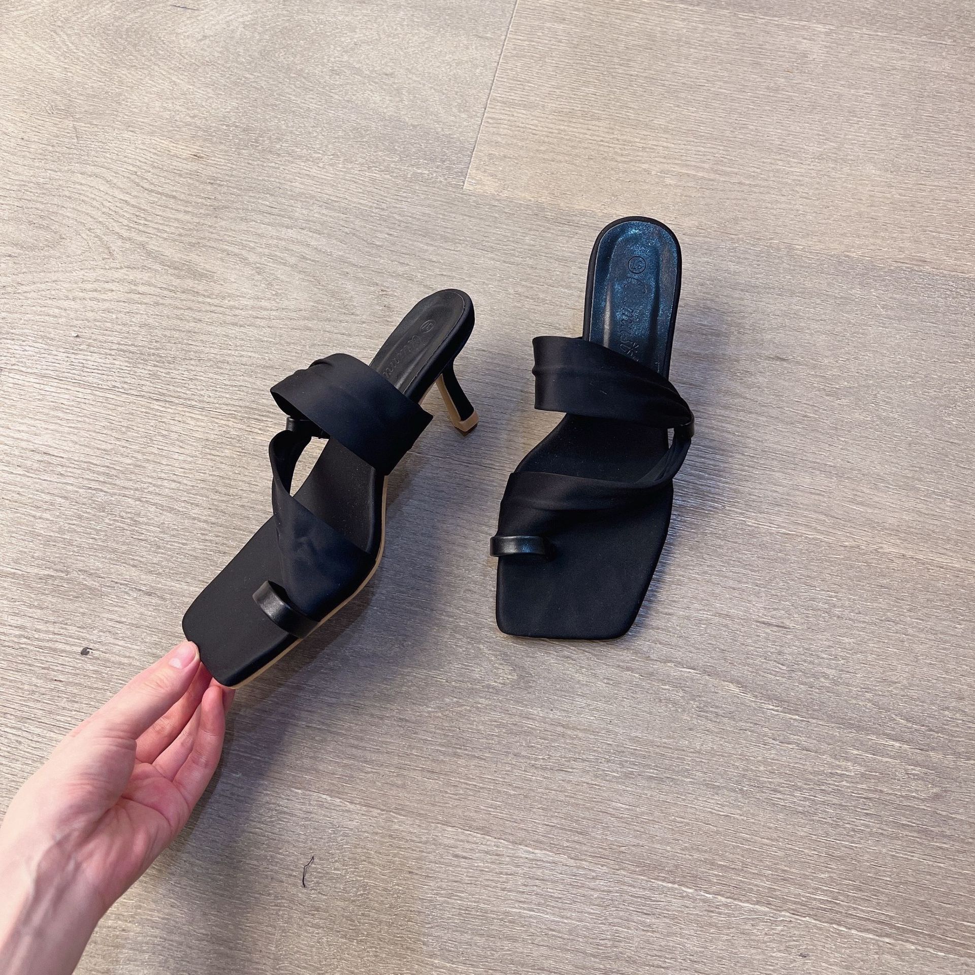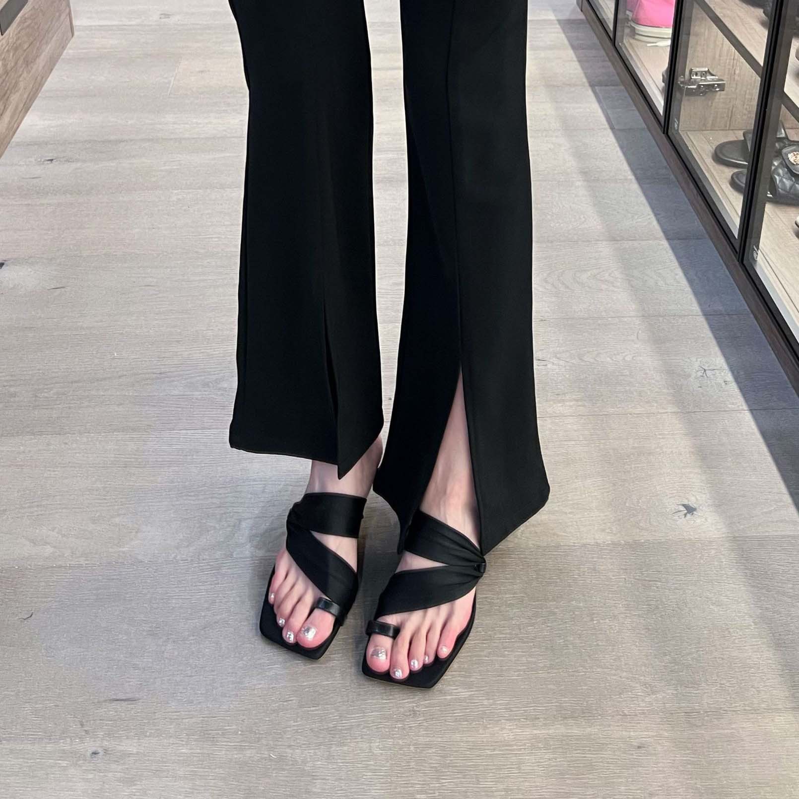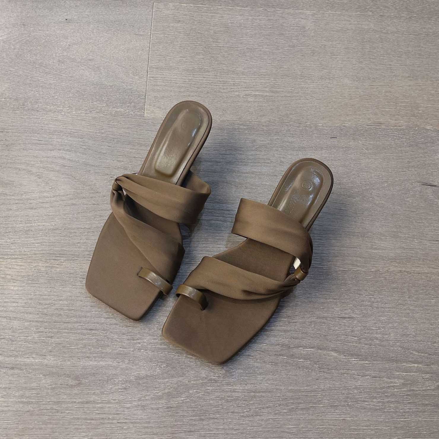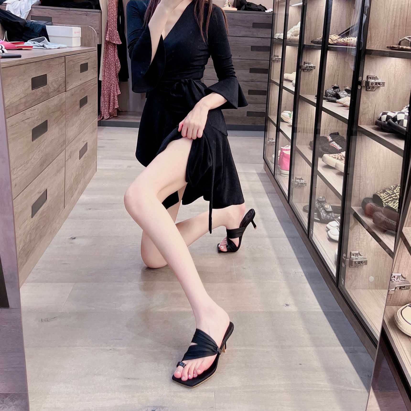 의상 슬리퍼 여성 여름 하이 엔드 2024 가을 뉴 오픈 발가락 하이힐 인스 타 그램 스타일 스퀘어 클립 토이 얇은 힐 샌들스토어 가기