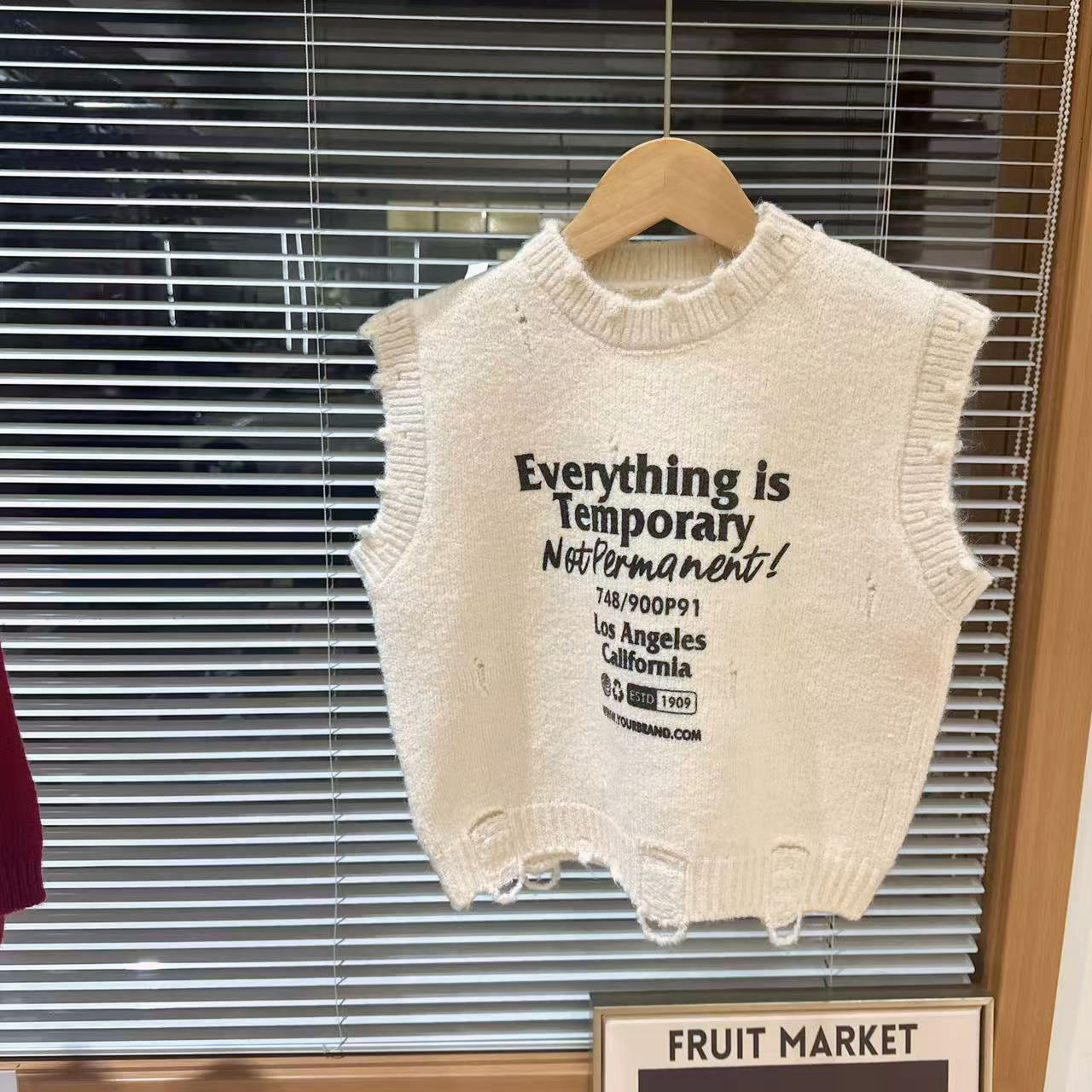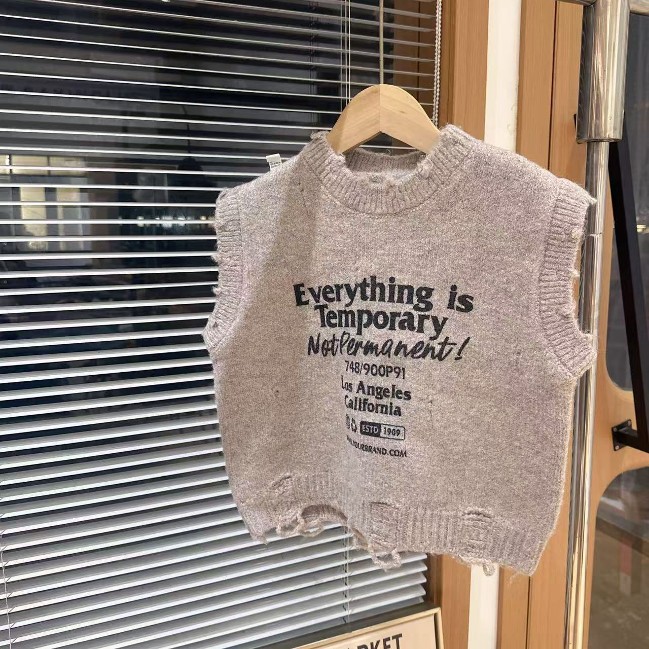 한국 스타일 소년 조끼 어린이 가을 조끼 2024 아기 소녀를위한 새로운 캐주얼 탑 트렌디 한 스웨터 트렌디스토어 가기