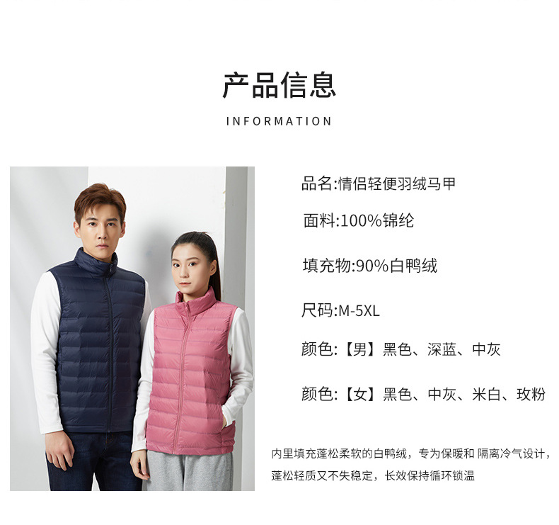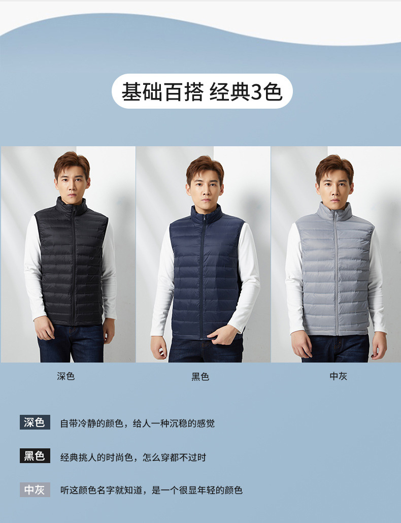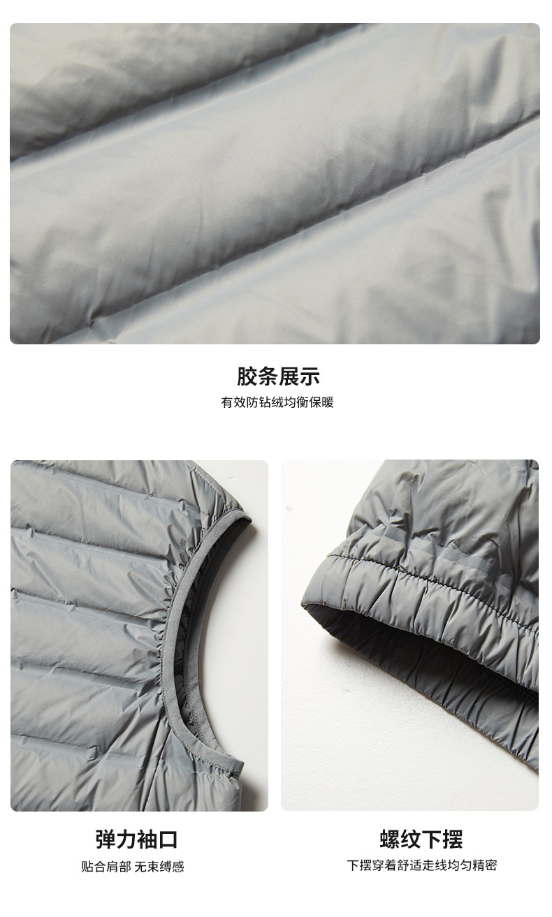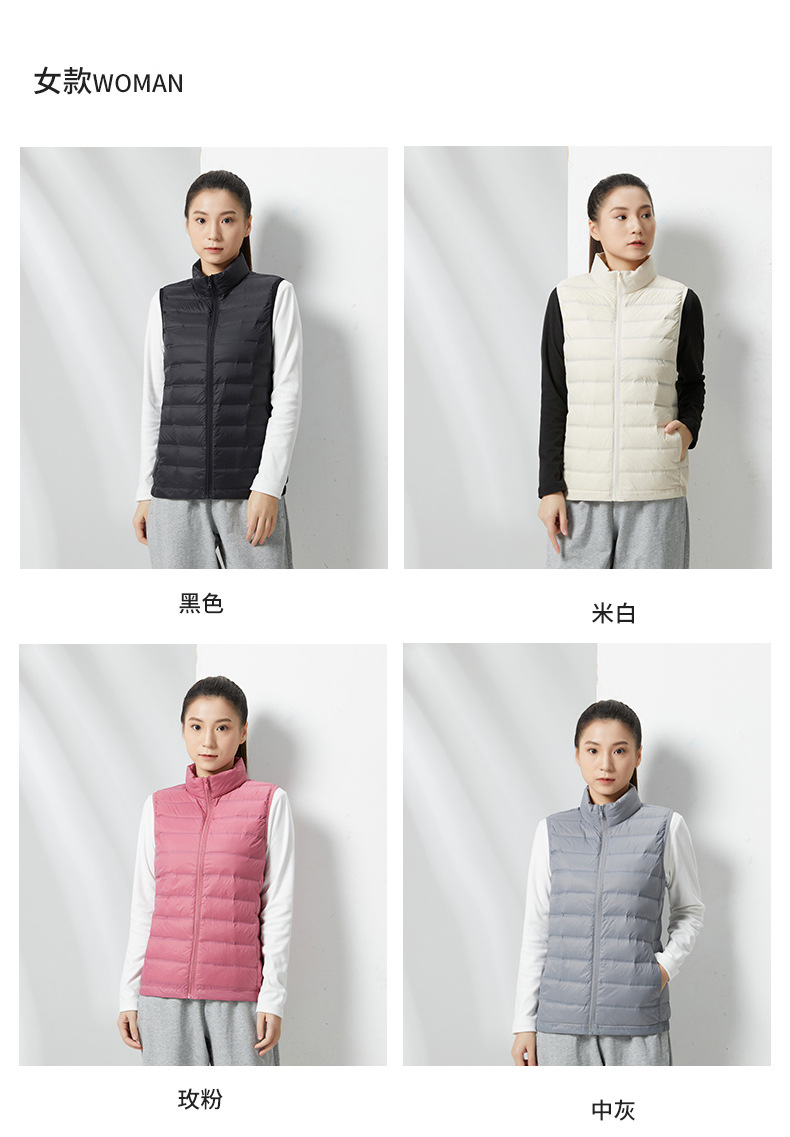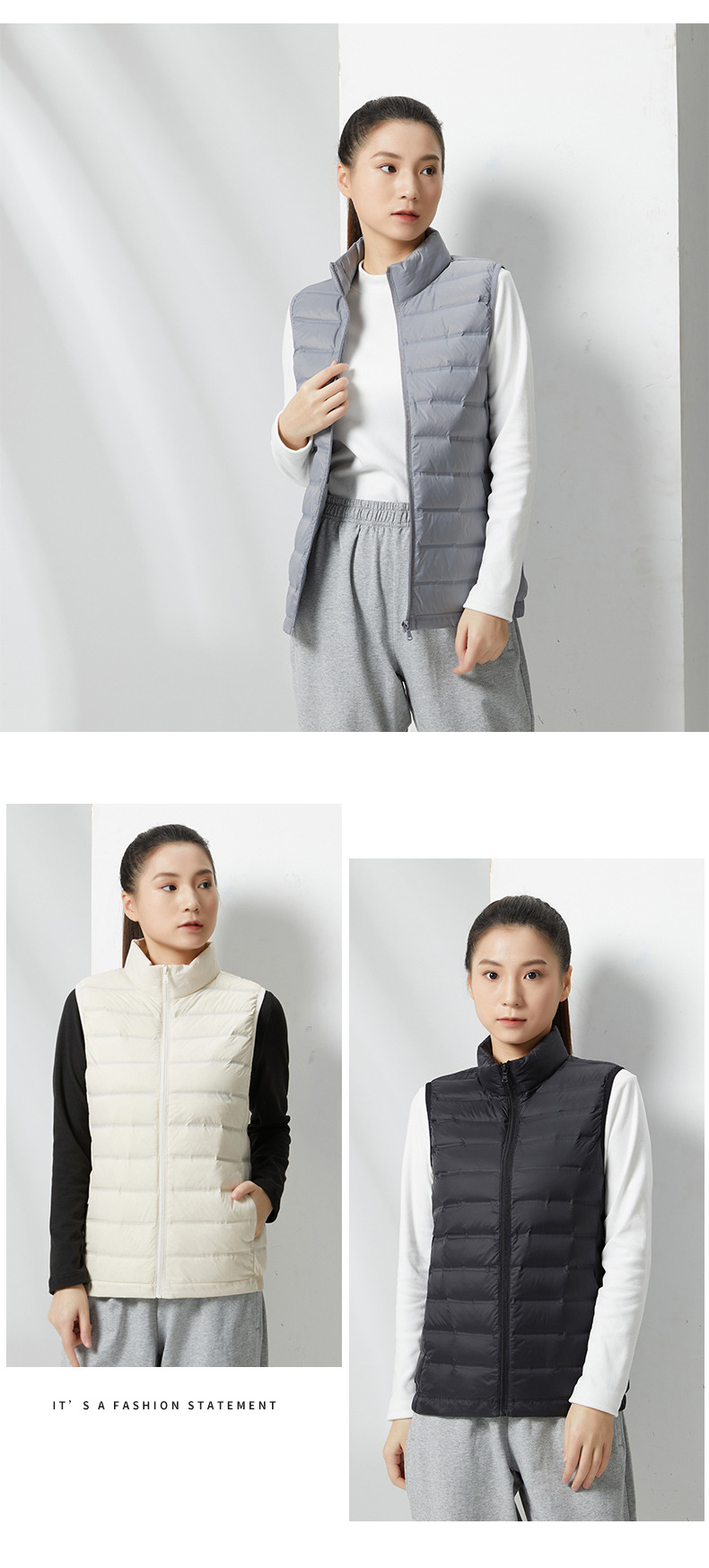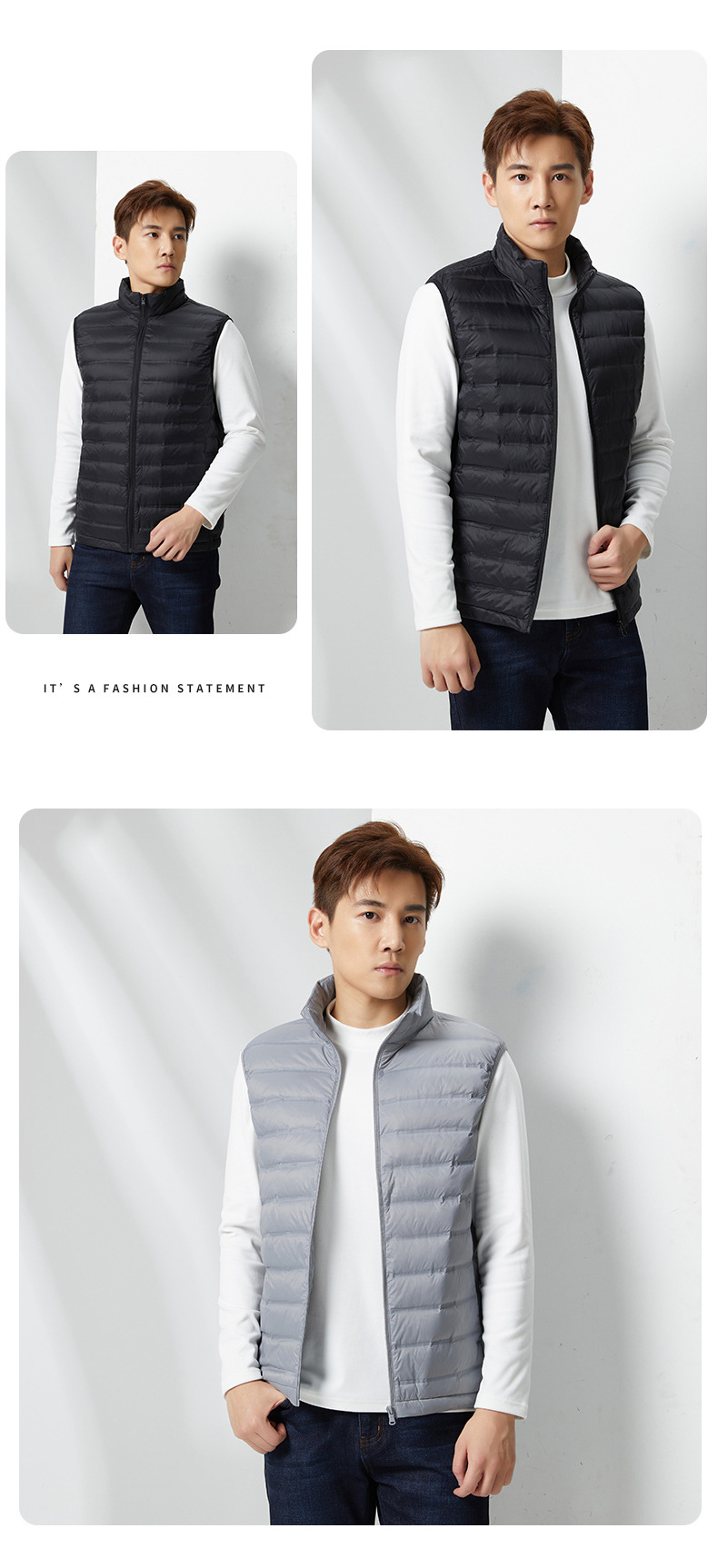 국경을 넘는 맞춤형 다운 조끼, 90% 흰 오리털 충전, 스탠드 칼라 다운 조끼, 휴대용, 가볍고 따뜻함스토어 가기