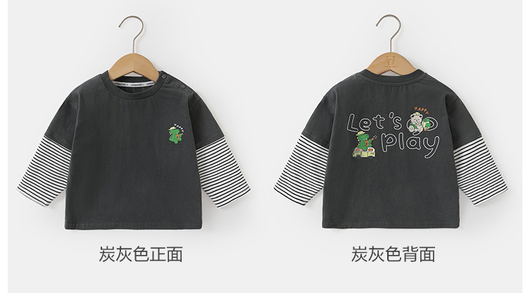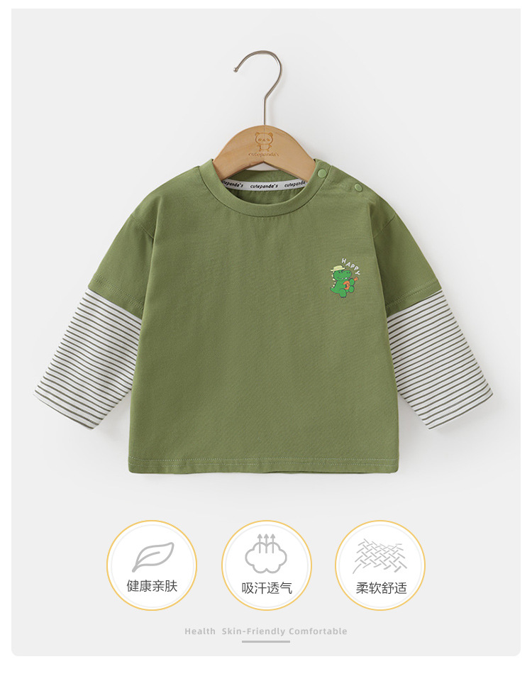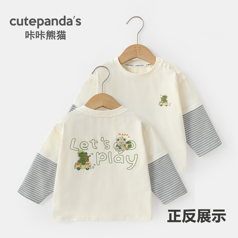 카카 팬더 아기 옷 어린이 가짜 투피스 긴팔 티셔츠 가을 옷 봄과 가을 소년과 소녀 아기베이스 셔츠스토어 가기