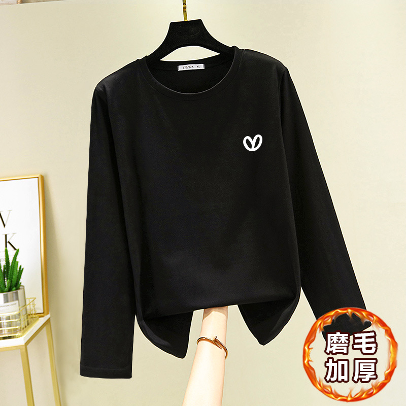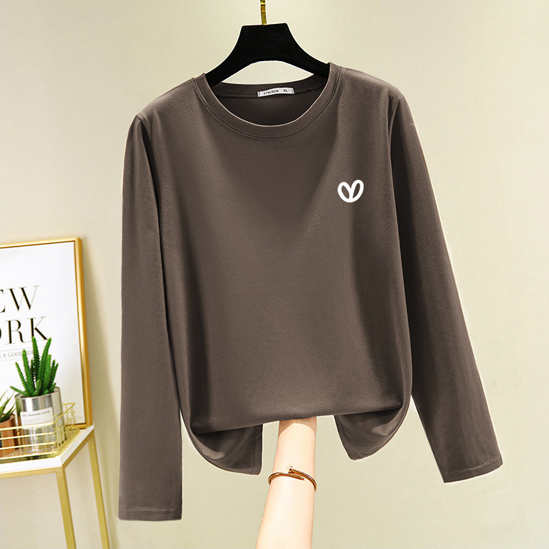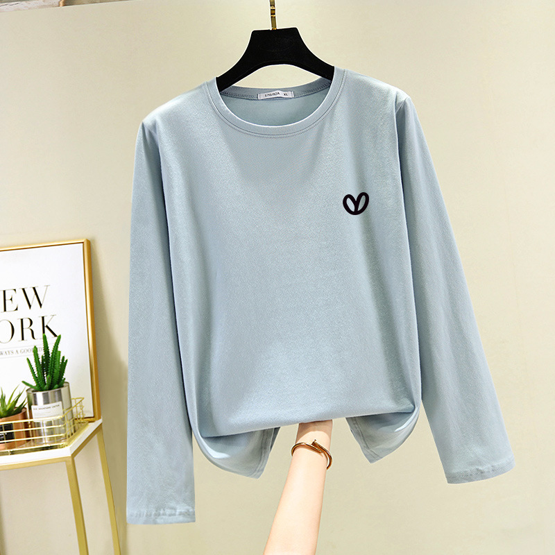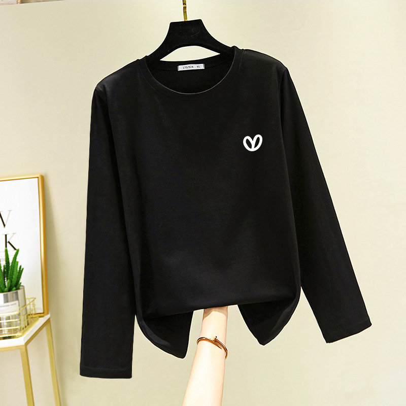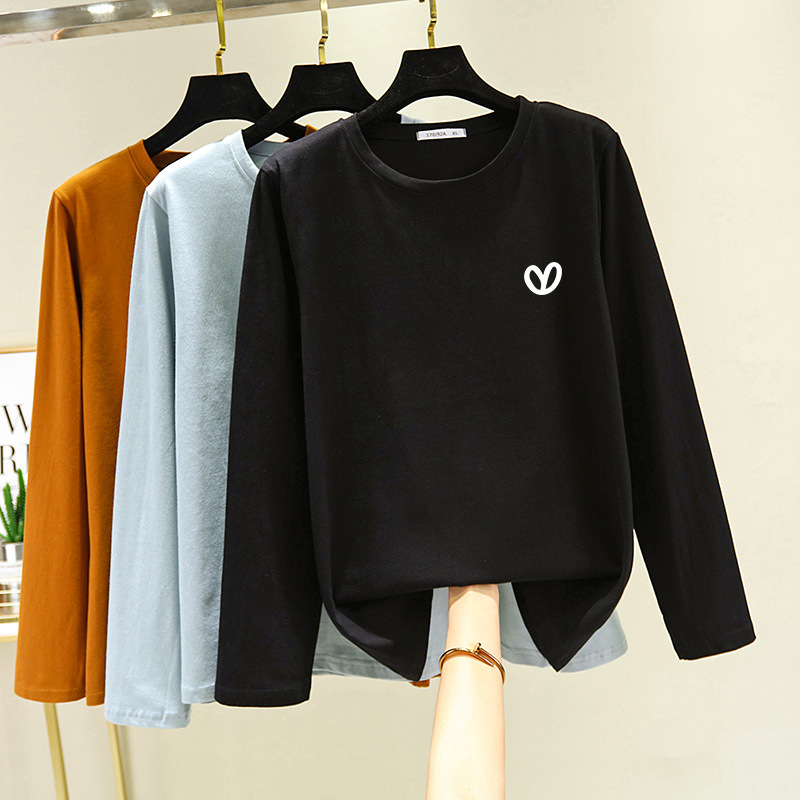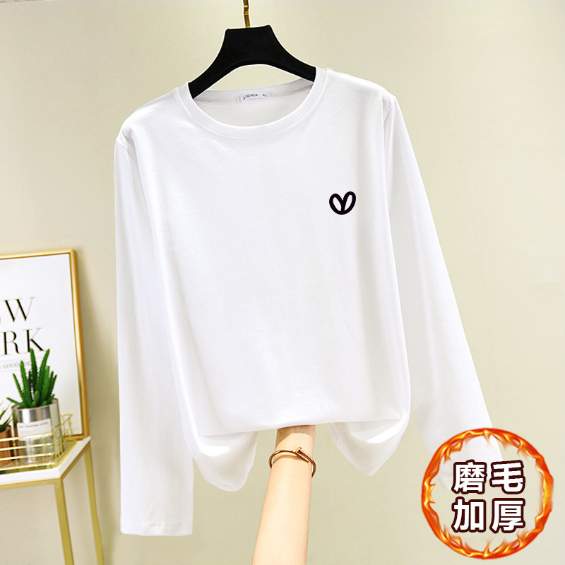 흰색 티셔츠 여성의 2024 가을 플러스 사이즈 얇은 느슨한 긴 소매 면 승무원 목 지방 mm200 kg 기본 셔츠스토어 가기