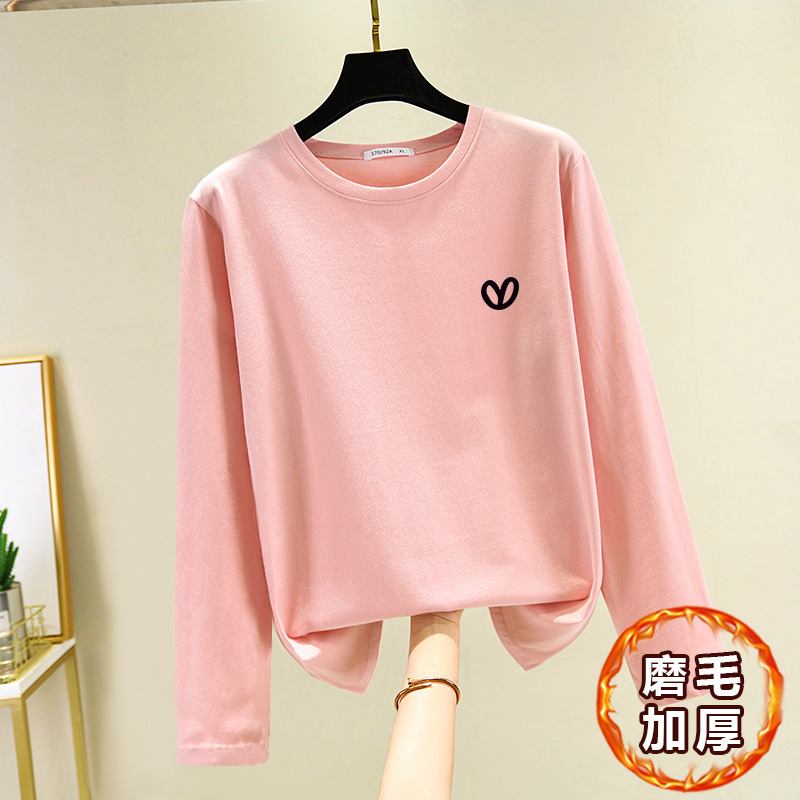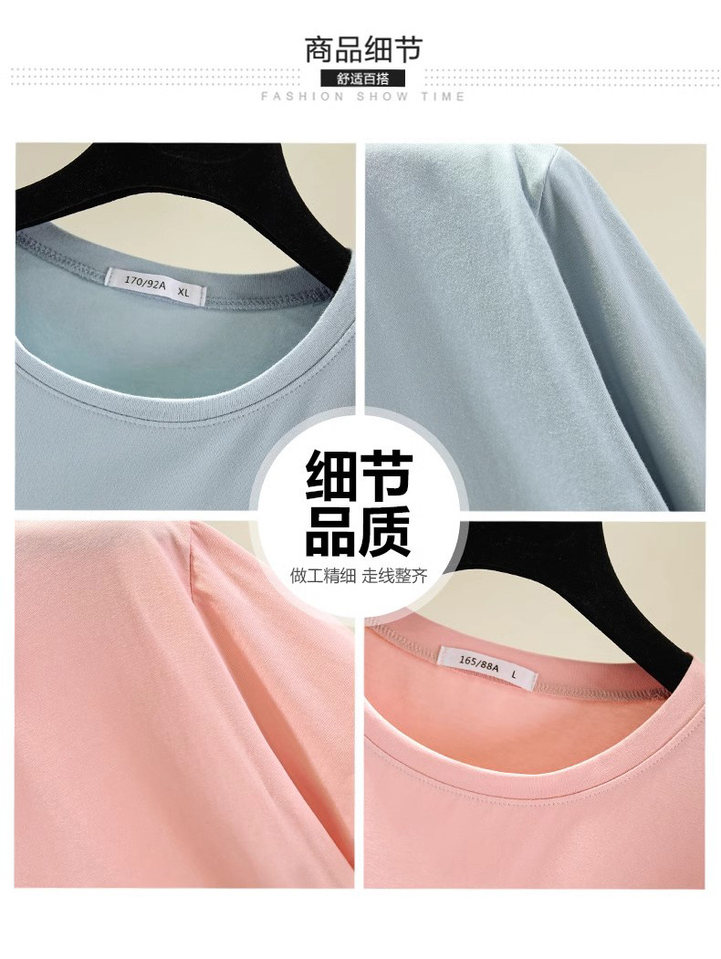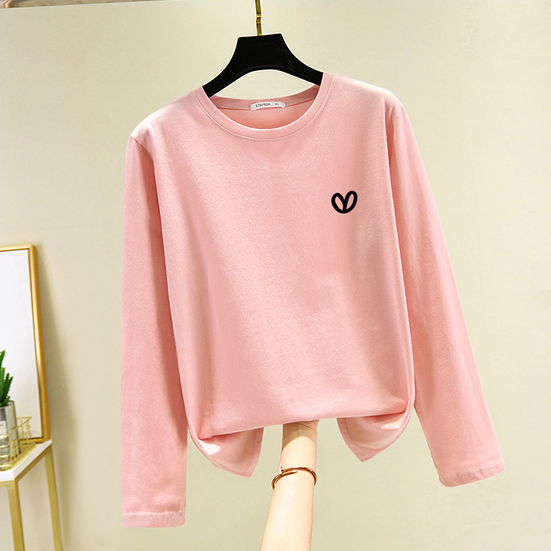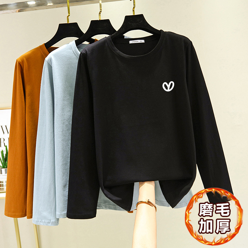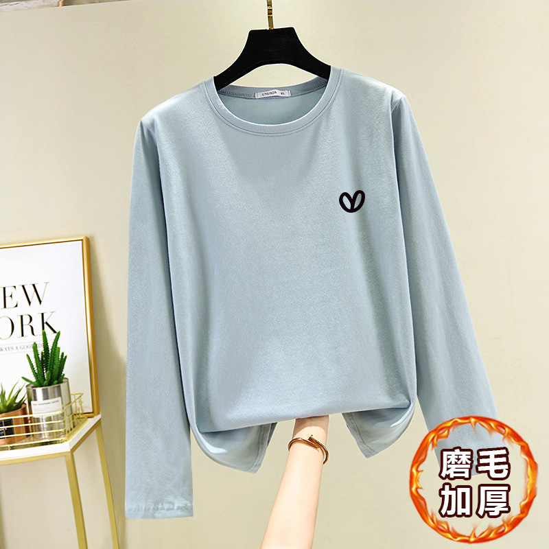 흰색 티셔츠 여성의 2024 가을 플러스 사이즈 얇은 느슨한 긴 소매 면 승무원 목 지방 mm200 kg 기본 셔츠스토어 가기