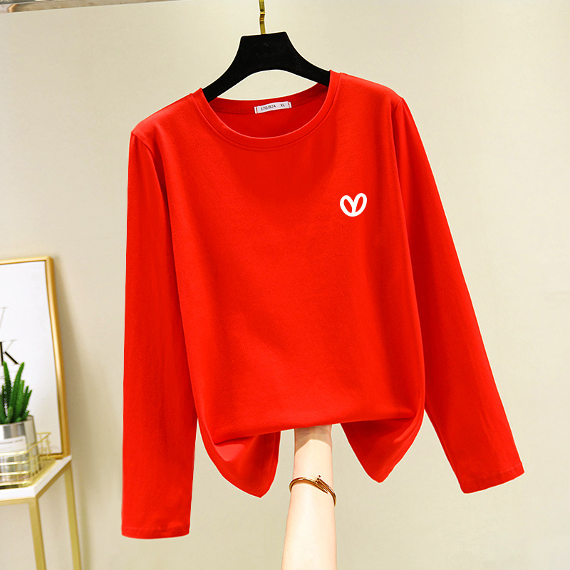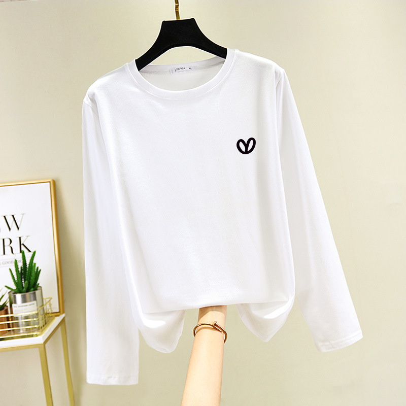 흰색 티셔츠 여성의 2024 가을 플러스 사이즈 얇은 느슨한 긴 소매 면 승무원 목 지방 mm200 kg 기본 셔츠